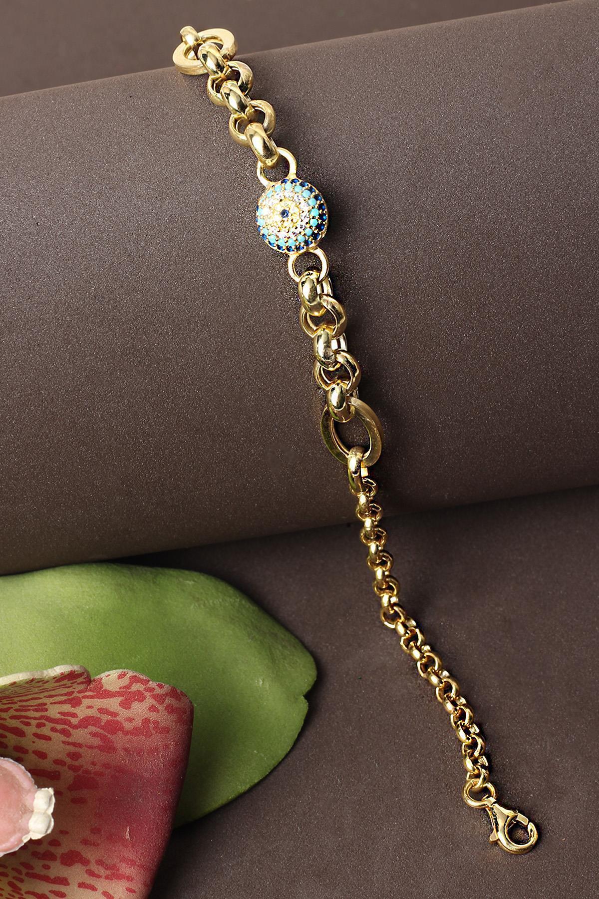 Zincir Bileklik Nazar Göz Yuvarlak 925 Ayar Gümüş Zincir Bileklik