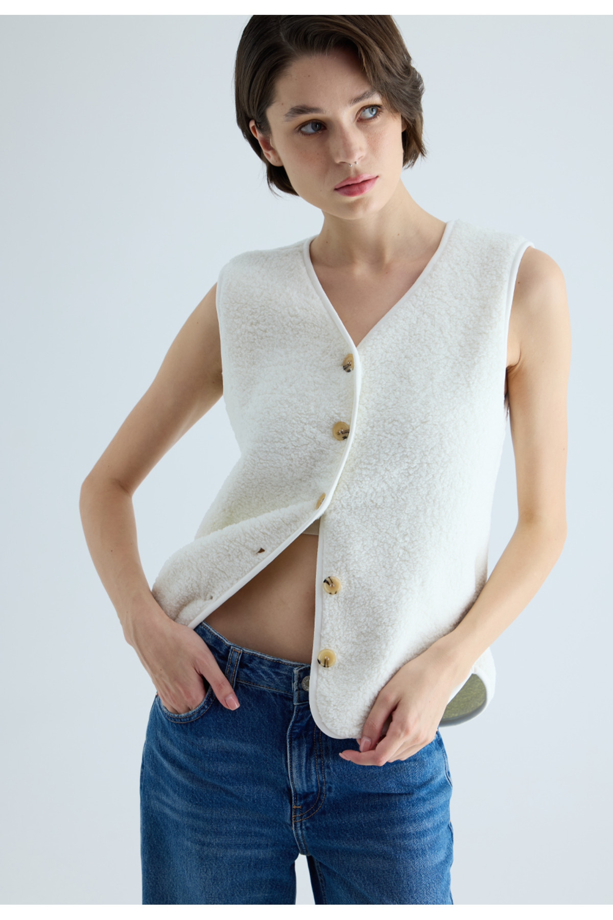 - Düğmeli detayları ile modern ve şık bir dokunuş ekler.