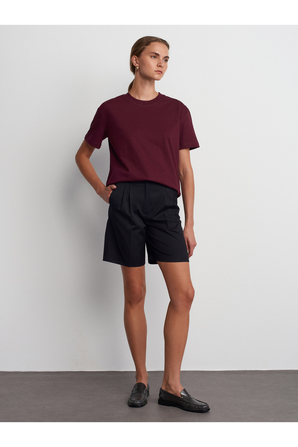 30312 Dekoratif Dikişli Bisiklet Yaka Tshirt-Koyu Kahve