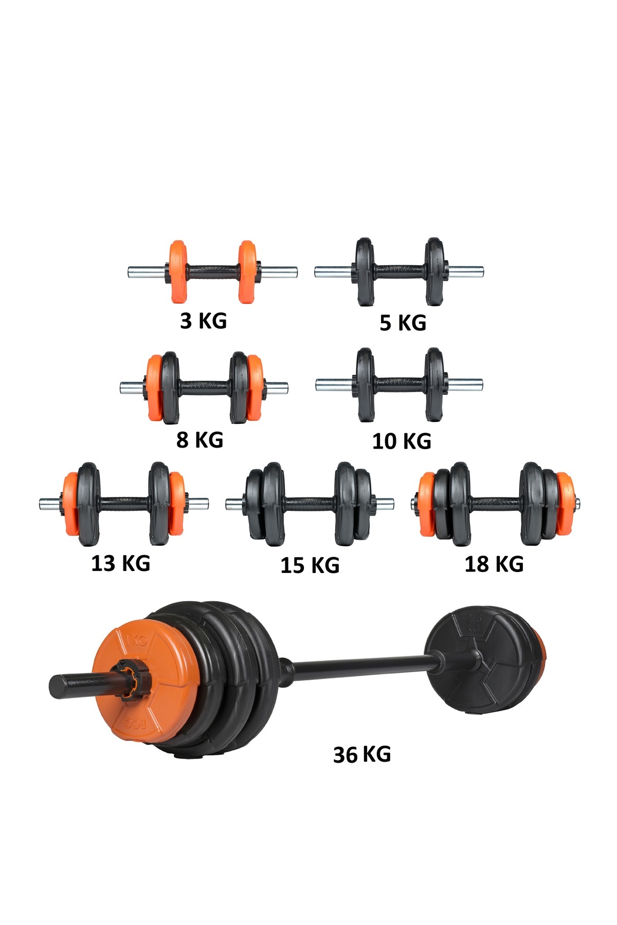 38 Kg Dambıl Halter Seti Turuncu Siyah