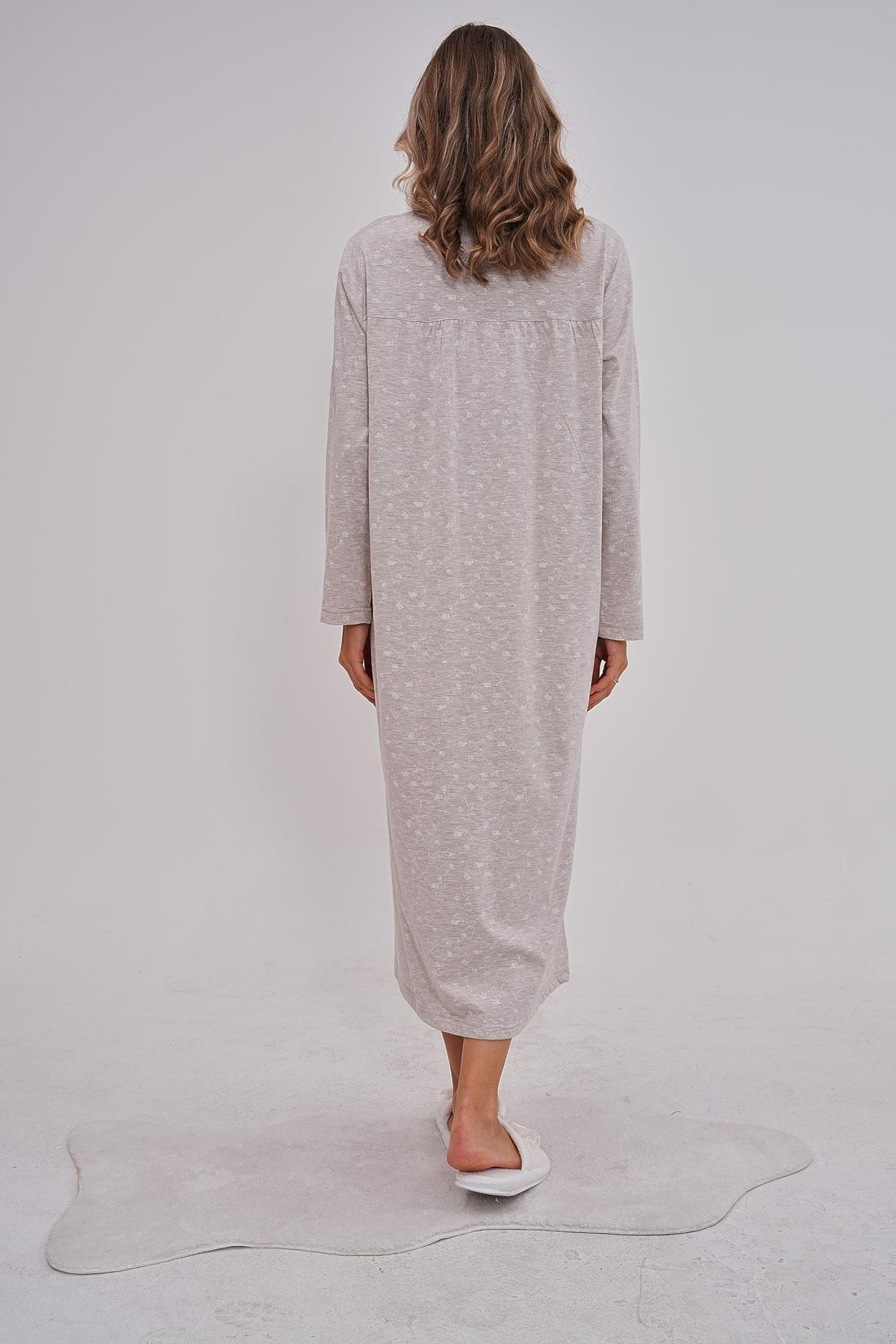 Kadın Vizon Desenli Önden Düğmeli Kışlık Pamuk Büyük Beden (Battal Boy) Uzun Kollu Gecelik