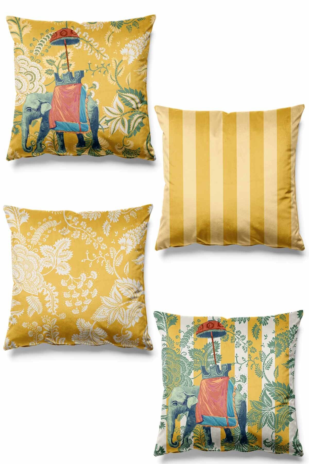 - Çift taraflı baskılı kiremit deseniyle zenginleştirilmiş, Hint fili temalı süet kırlent kılıfları, oturma odanızın atmosferini canlandırır.