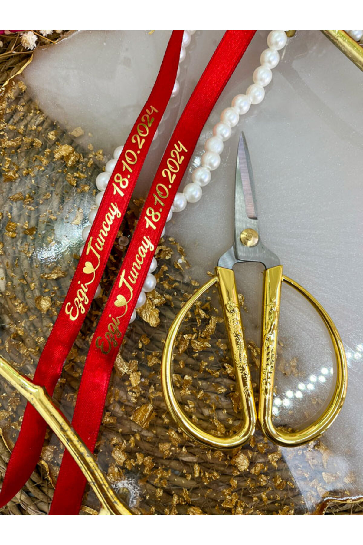 Dökülen Incili Isimli Söz Ve Nişan Kurdelesi Beyaz Kırmızı İmza Bağlı Kalpler Modeli