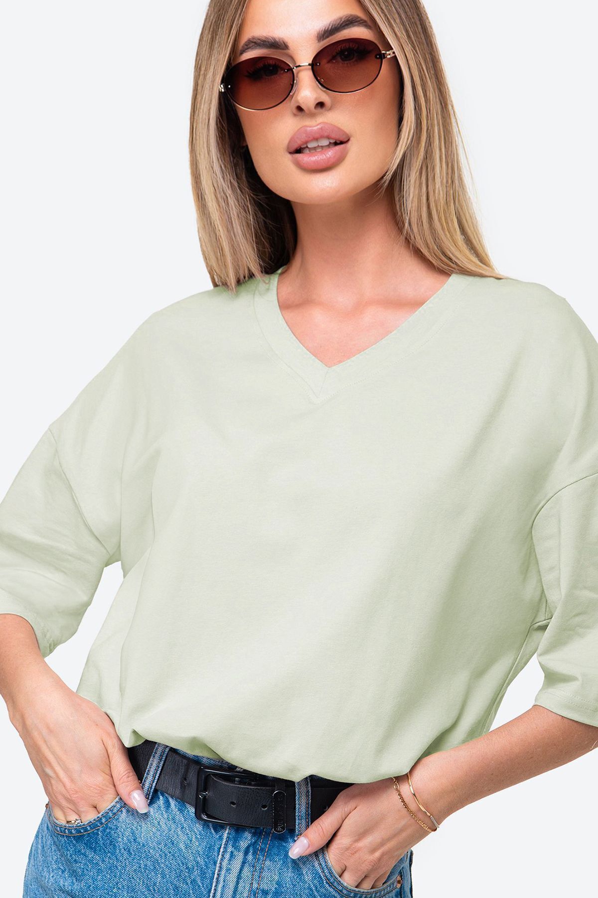 V yaka ve serbest kesim ile tasarlanmıştır.