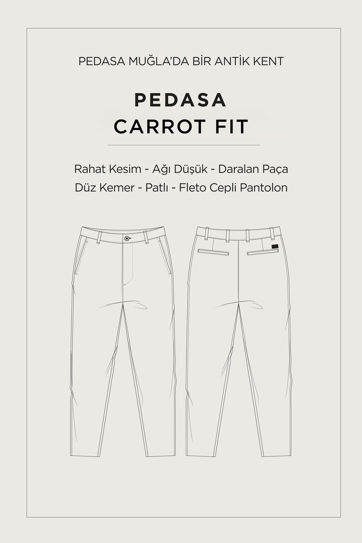 Pamuklu, Diyagonal desenli, Yandan cepli, Esnek kumaş, Arkada düğmeli cepli, Önden düğme ve fermuar kapama, Carrot Fit Örme Pantolon
