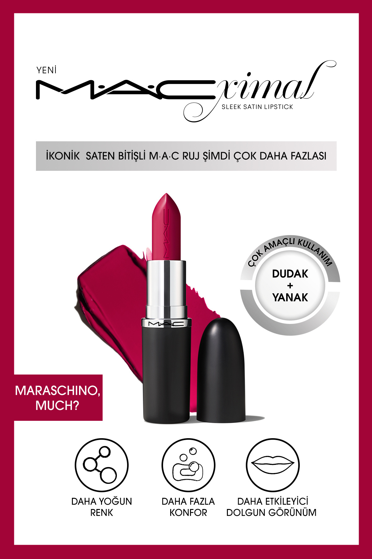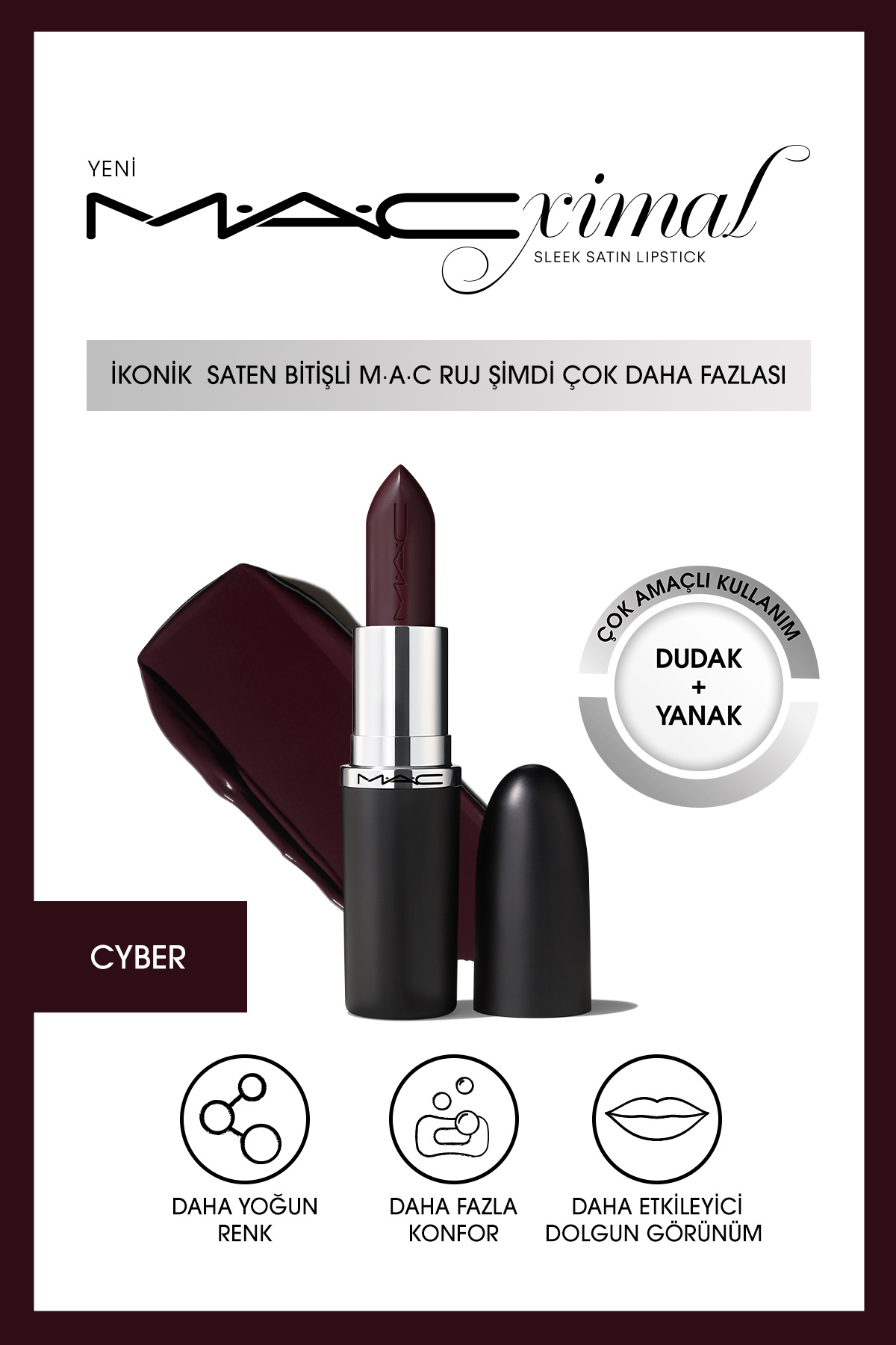 İkonik Saten Rujumuz, dudaklara DAHA FAZLA renk ve daha fazla konfor sunmak için geliştirildi.
