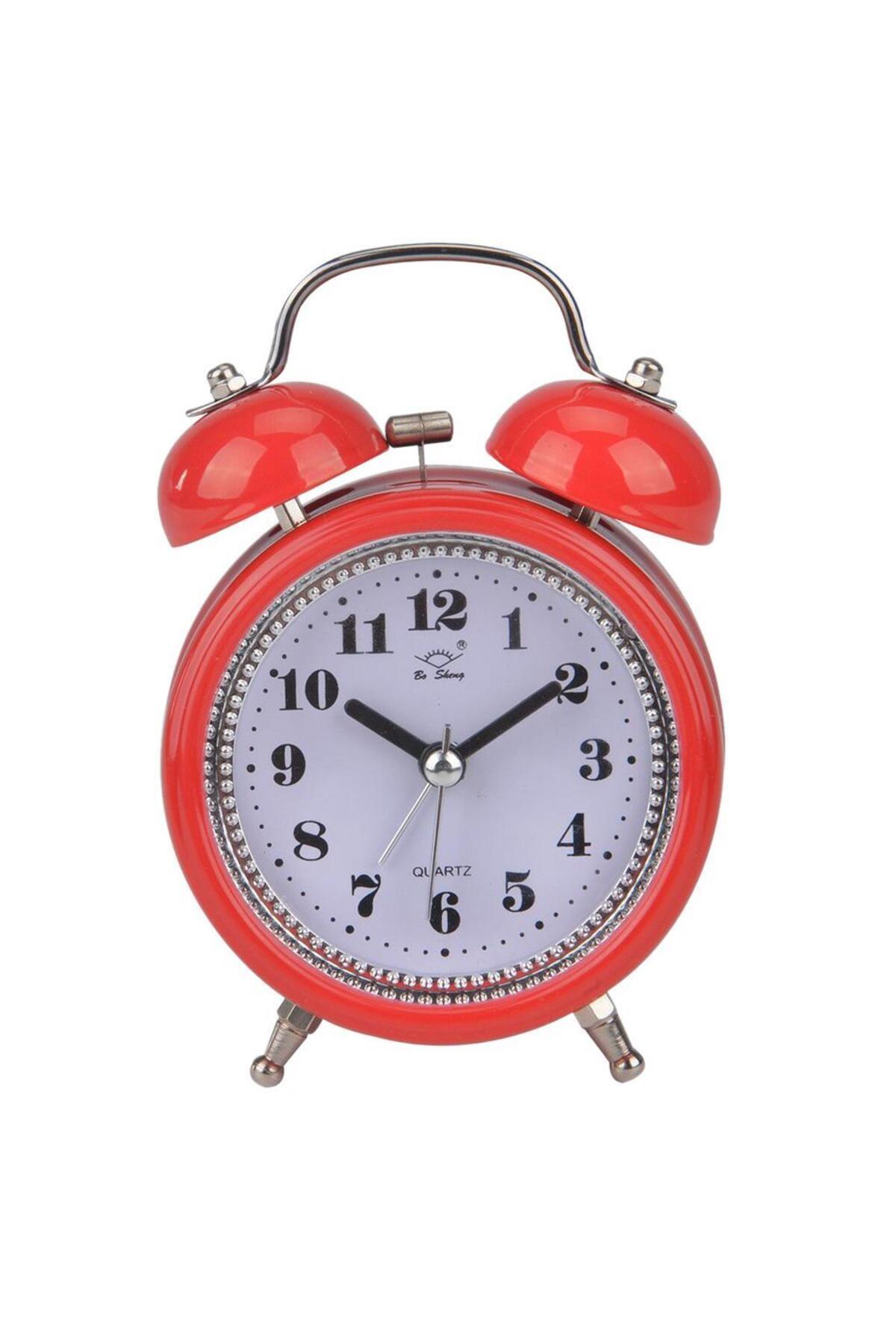 Masa Saati Çıngıraklı Zilli Metal Çalar Saat Kırmızı