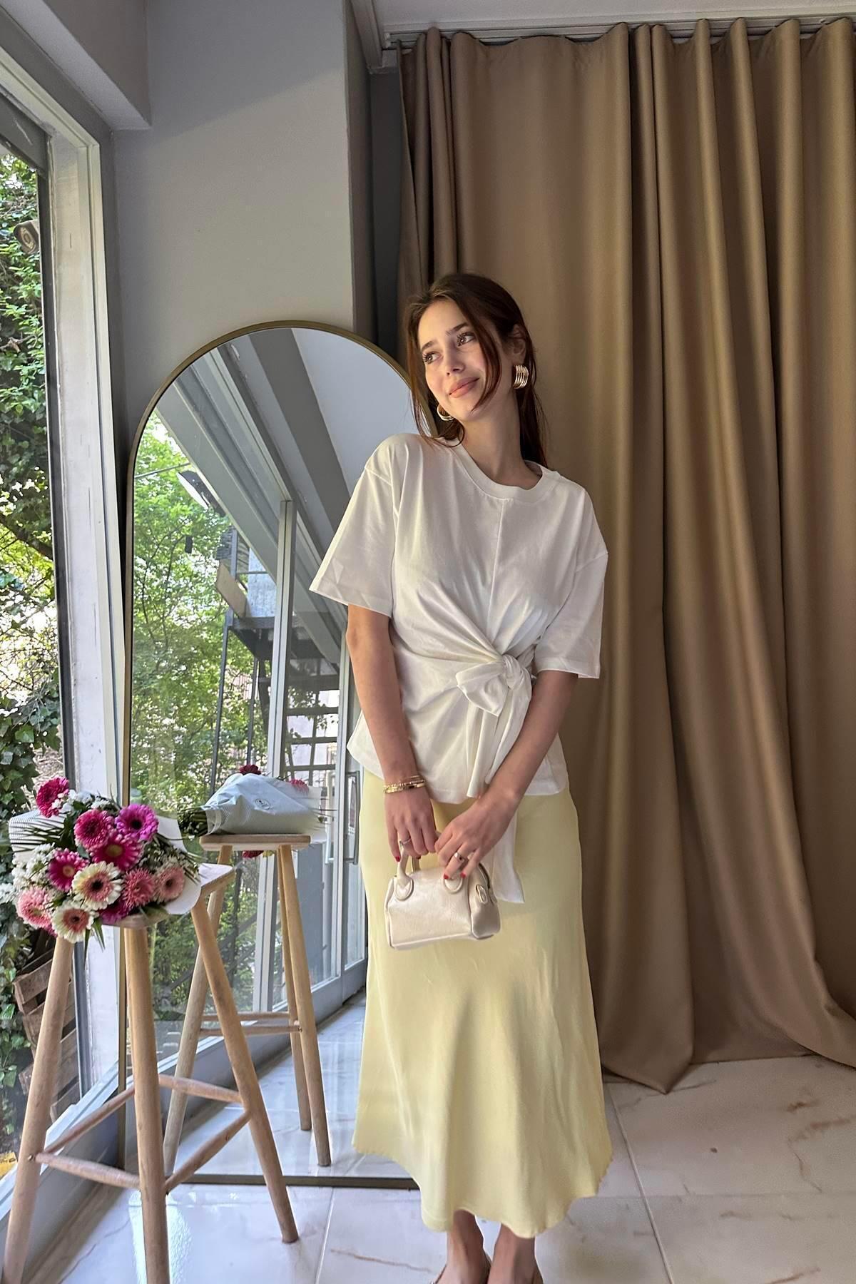 Parlak ve akışkan saten kumaş Günlük, ofis ve özel davetlerde kullanıma uygun Rahat kesim – esnek bel yapısı Şıklığı sadelikle birleştiren özel tasarım Hem gündüz hem gece kullanıma uygun Modelde S Beden Kullanılmıştır