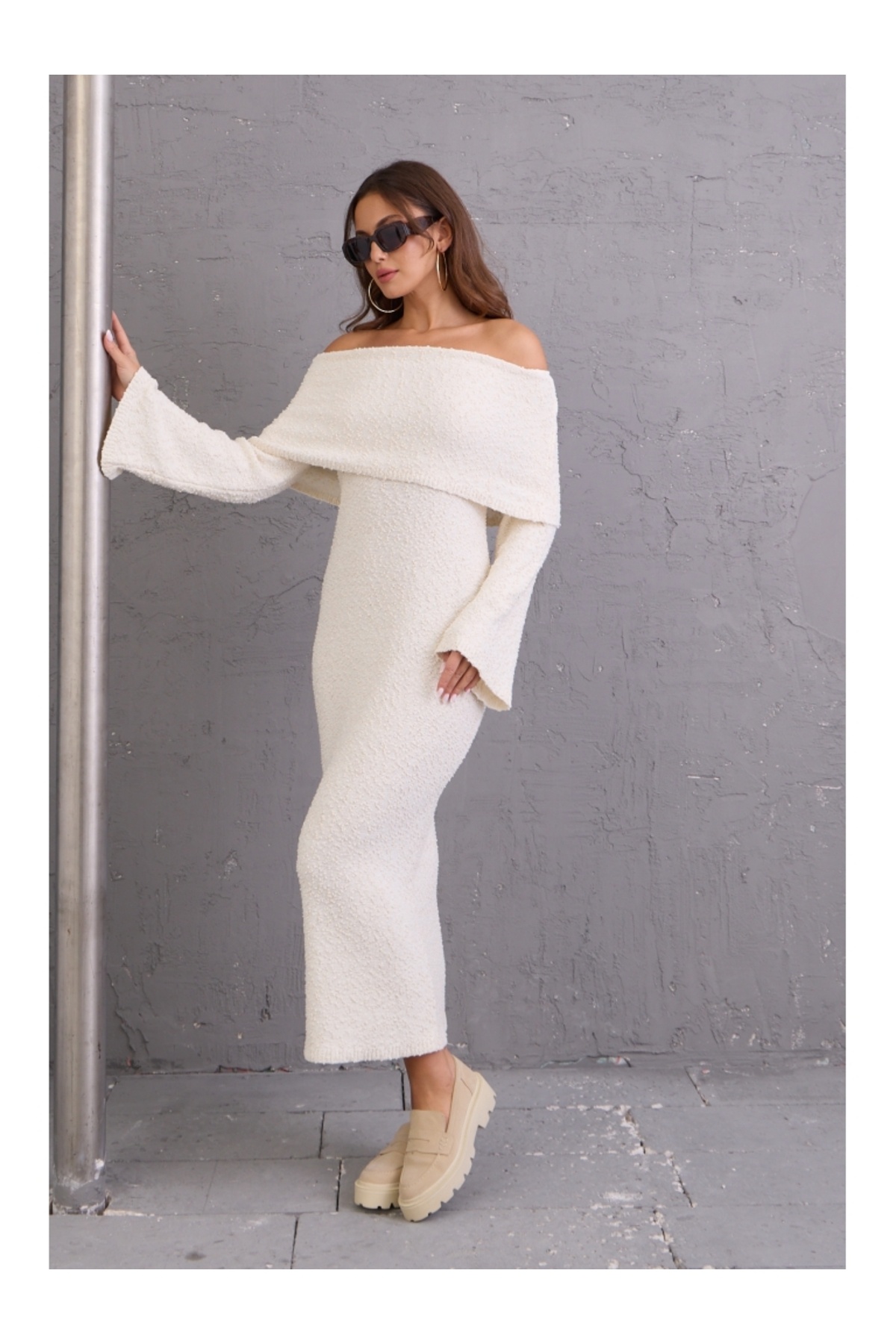 Ekru Madonna Yaka Dokulu Triko Elbise