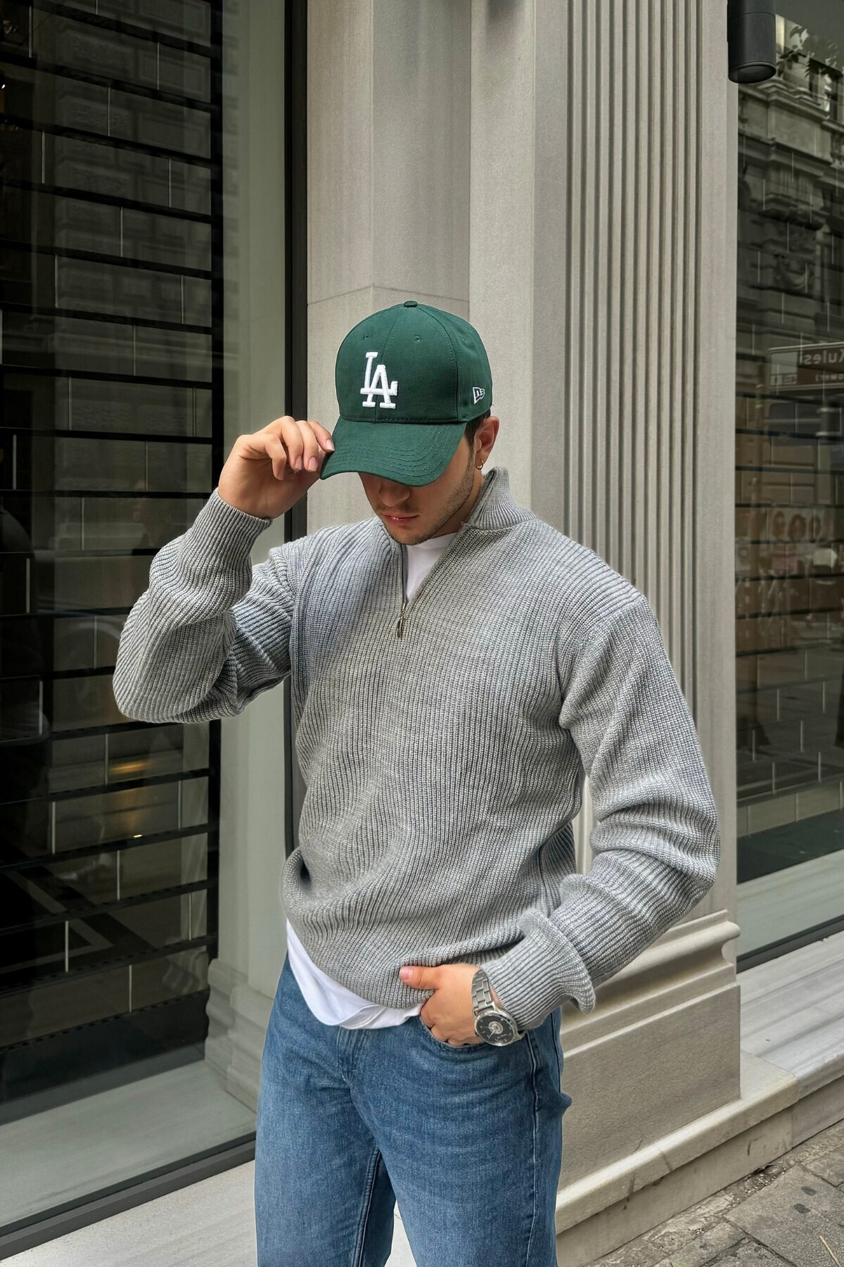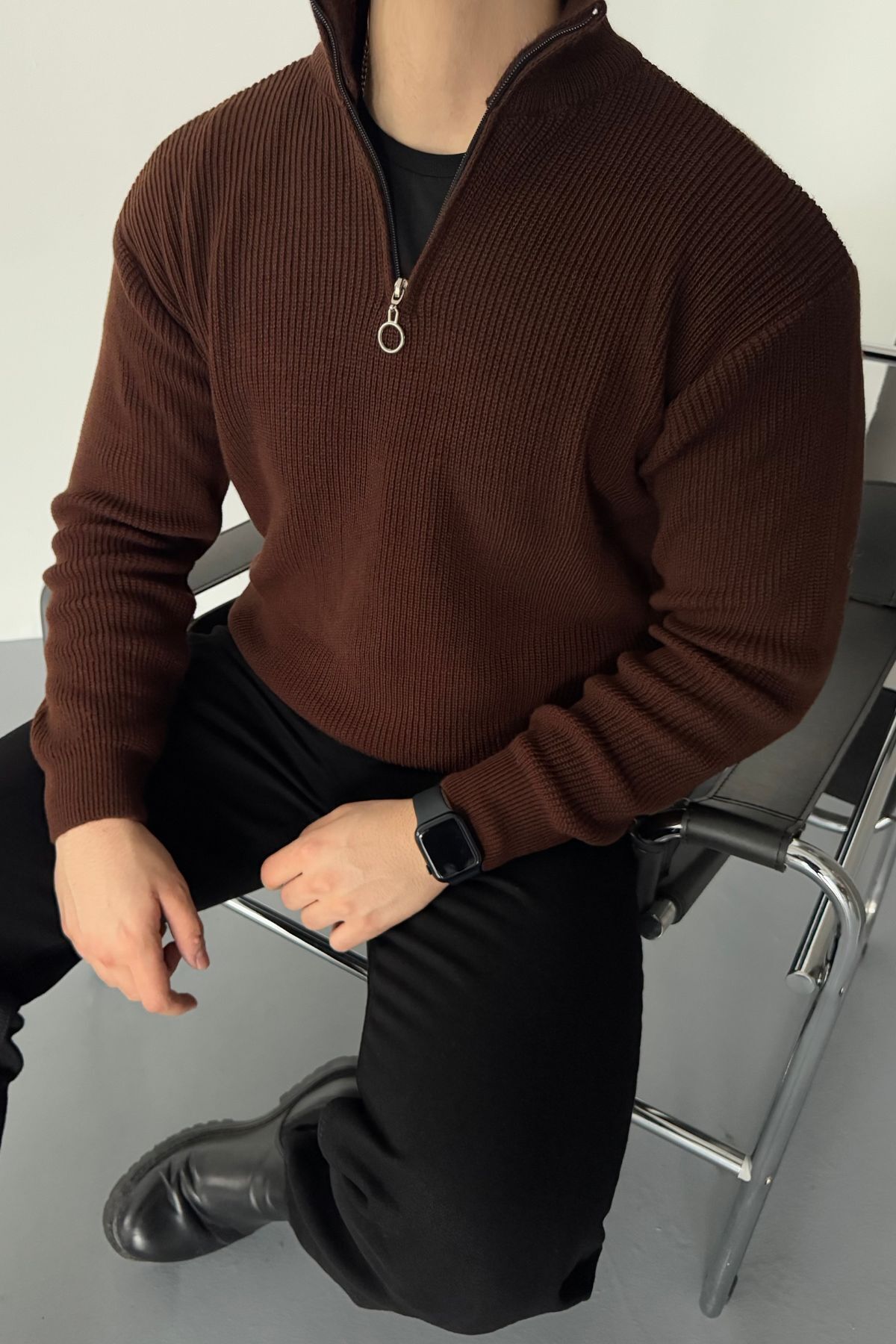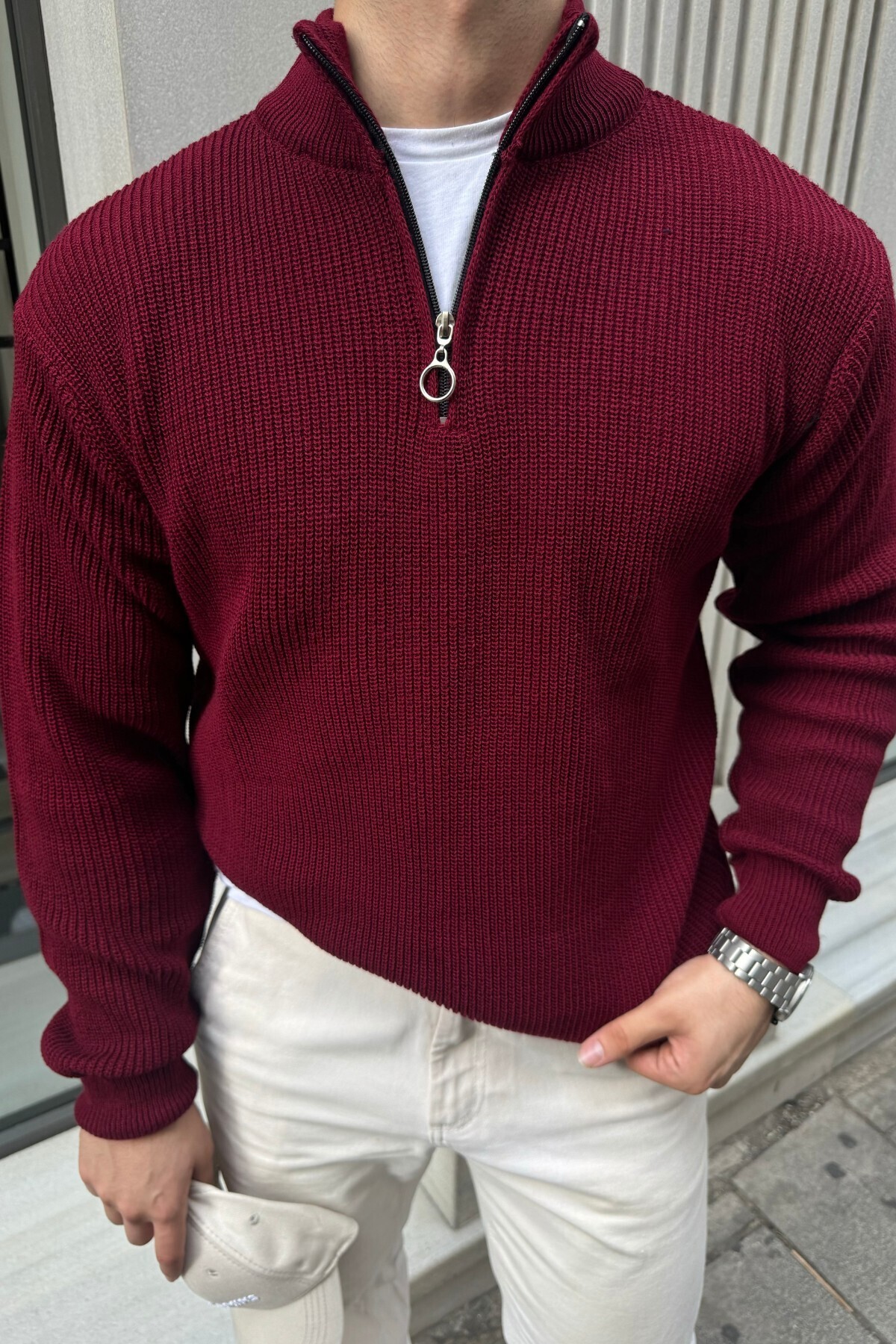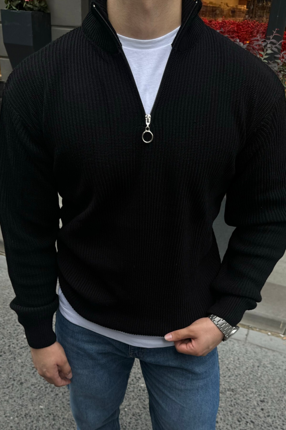 Erkek Yarım Fermuarlı Dik Yaka Kalın Kazak Triko