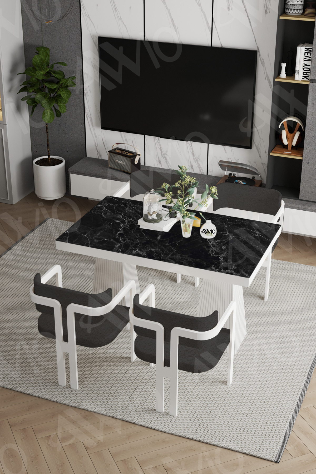 - 80 x 120 boyutlarındaki masa ölçüsü, geniş yüzey alanı sayesinde yemeklerinizi rahatça servis etmenize olanak tanırken, 4 adet sandalye ile tamamlanan takım, misafirlerinizi ağırlamak için mükemmel bir seçenektir.