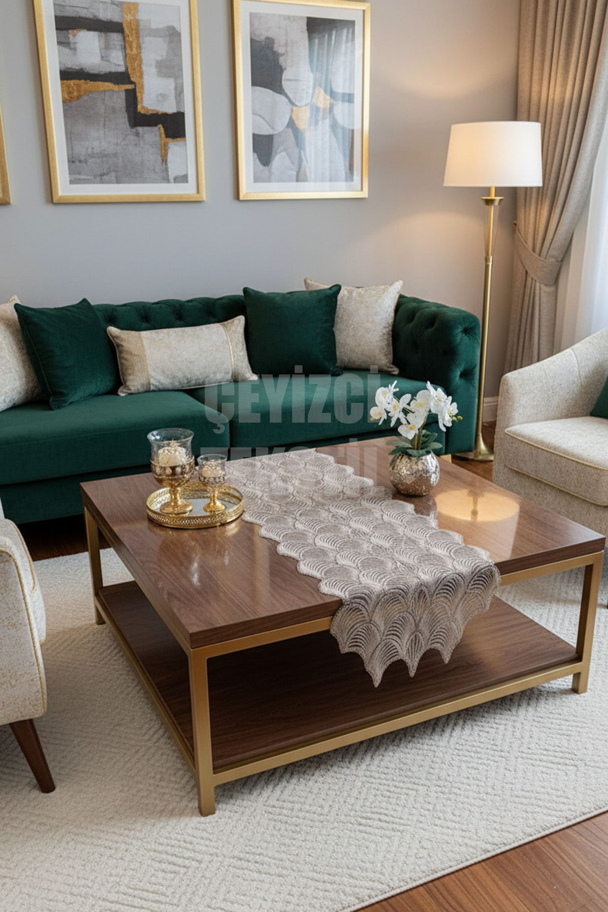 Tek parça halinde gelen bu runner, pratik bir şekilde masa üzerine serilebilir ve şık bir görünüm sağlar