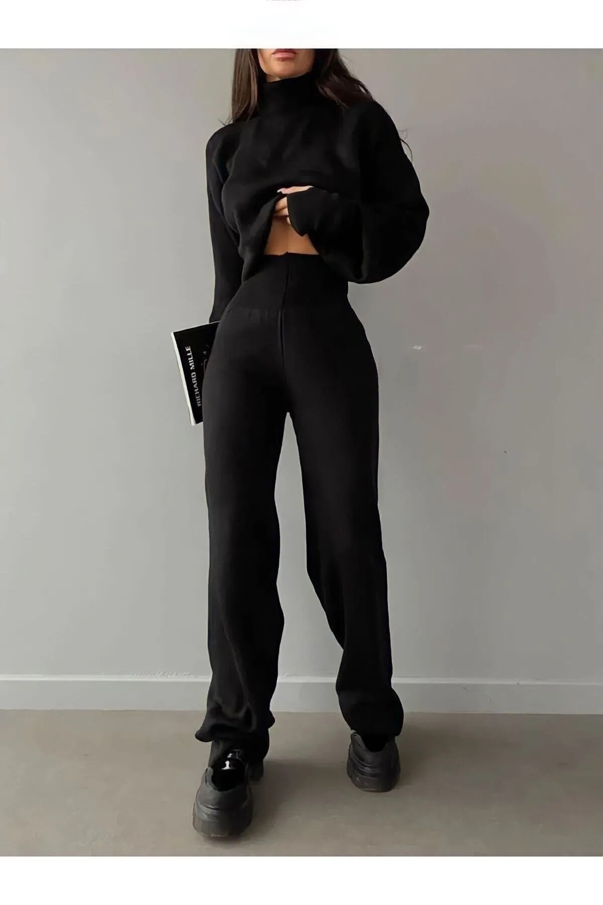 - Rahat kesimi ile günlük kullanım için ideal, oversize triko crop takımı.