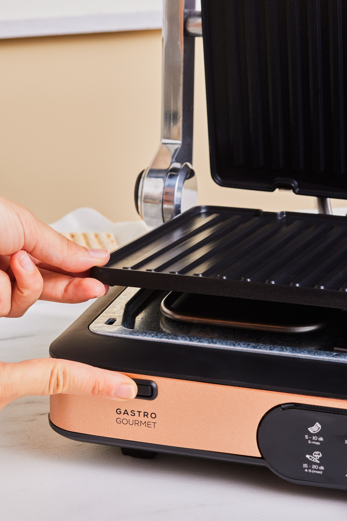 -5 farklı sıcaklık seviyesi ile tost ve ızgaralarınızı damak zevkinize göre pişirebilirsiniz. Yanmaz yapışmaz çıkarılabilir plakaları sayesinde temizlik işi daha kolay ve pratik hale gelir.