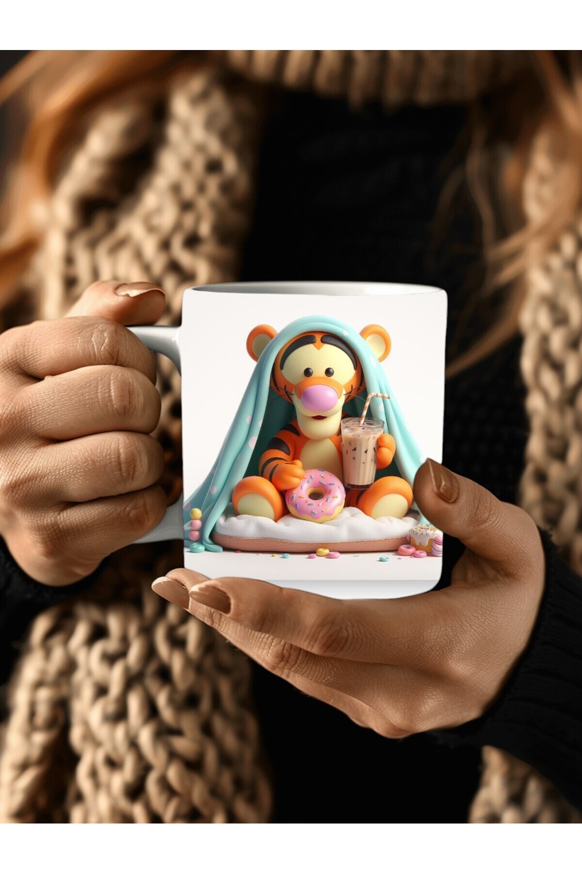 Winnie the Pooh - Kaplan Tigger - İyor - Piglet Baskılı 3D Tasarım Seramik Kupa Mug