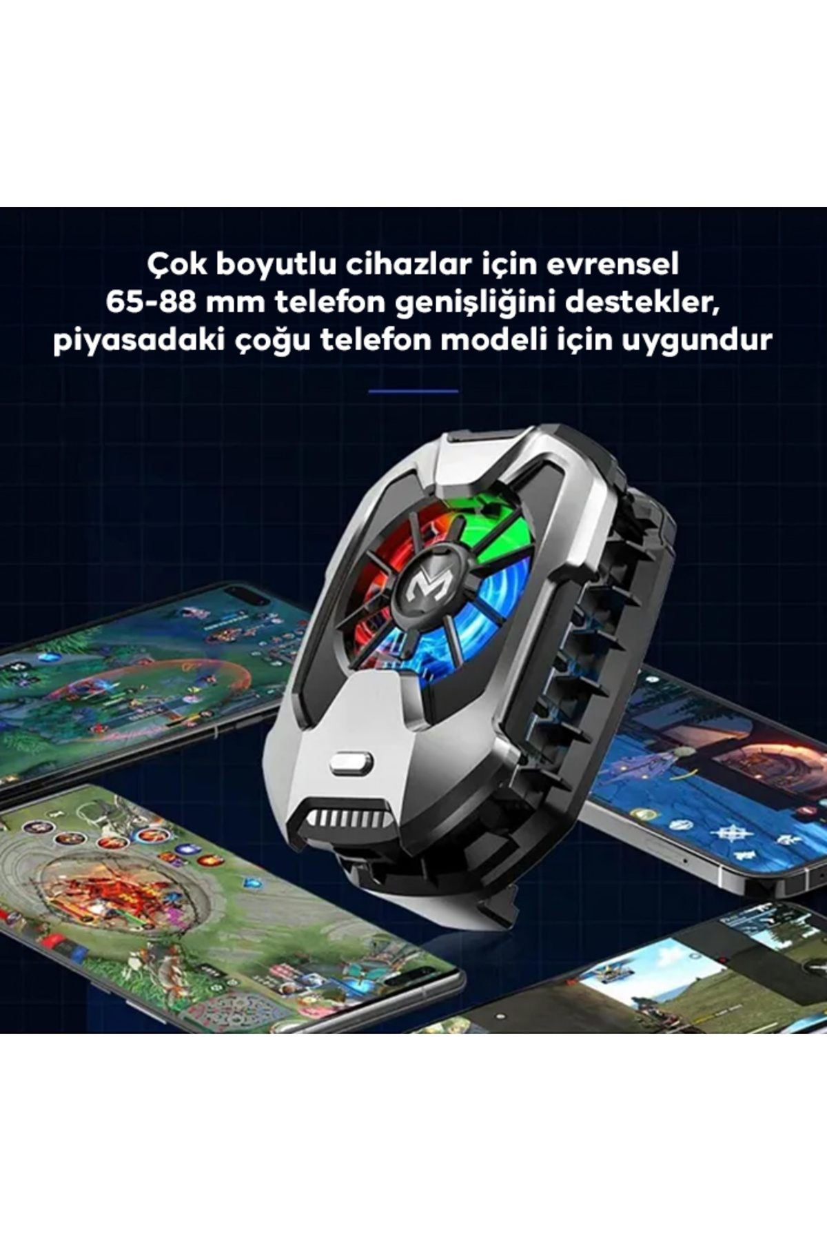 MEMO DLA8 Cep Telefon Soğutma Fanı Radyatör Soğutucu Rgb LED IşıklıMEMO DLA8 Cep Telefon Soğutma Fanı Radyatör Soğutucu Rgb LED Işıklı Kompakt ve Hafif Tasarım: Sadece 67 gr ağırlığındaki hafif tasarım, el hareketini kısıtlamaz veya hacim katmaz.