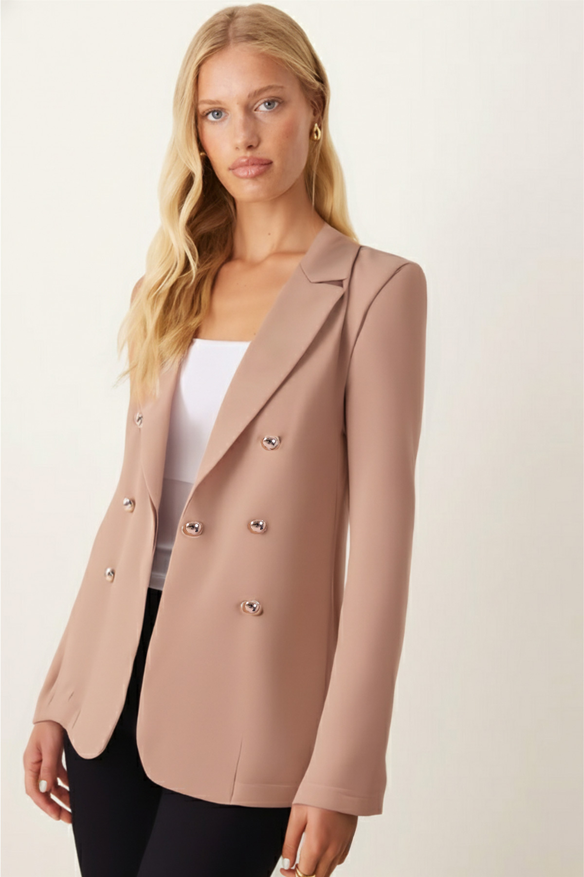 Fitted silueti ile vücut hatlarınıza mükemmel uyum sağlayarak zarif bir duruş sergiler