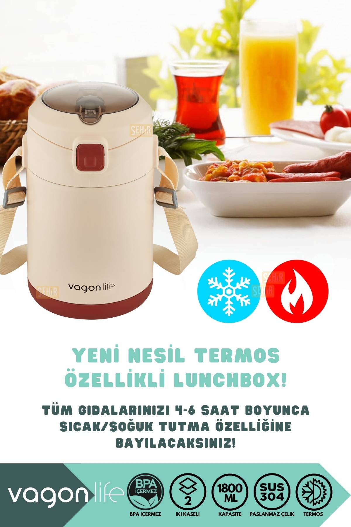Bento 1800ml Lunchbox Yeni Koleksiyon 2 Kaseli 4-6Saat Termos Özellikli Çelik SeferTası Yemek Kutusu