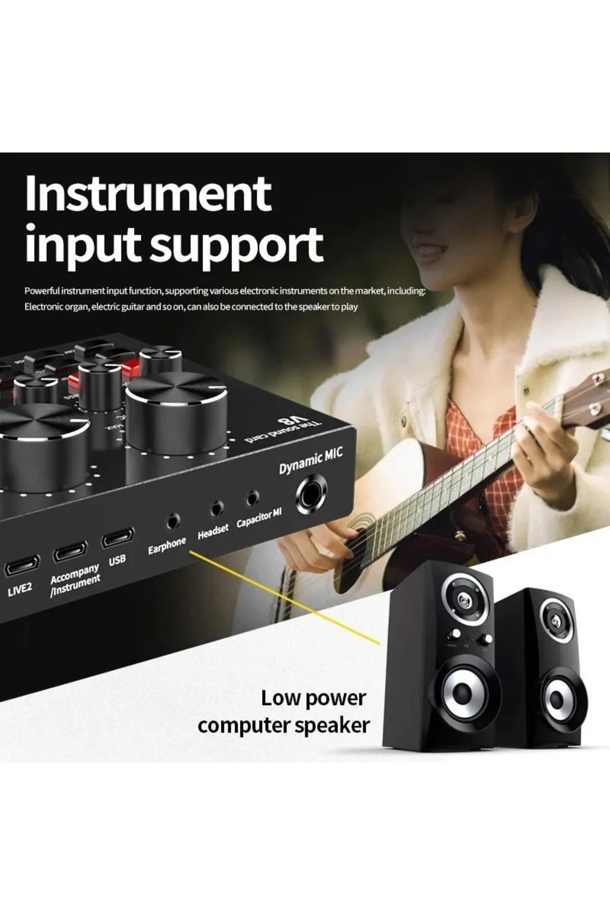 Profesyonel Stüdyo V8 Ses Kartı Youtuber İnfluencer Filtreli Kayıt Mikrofonu Masa Bağlantıl Mikrofon