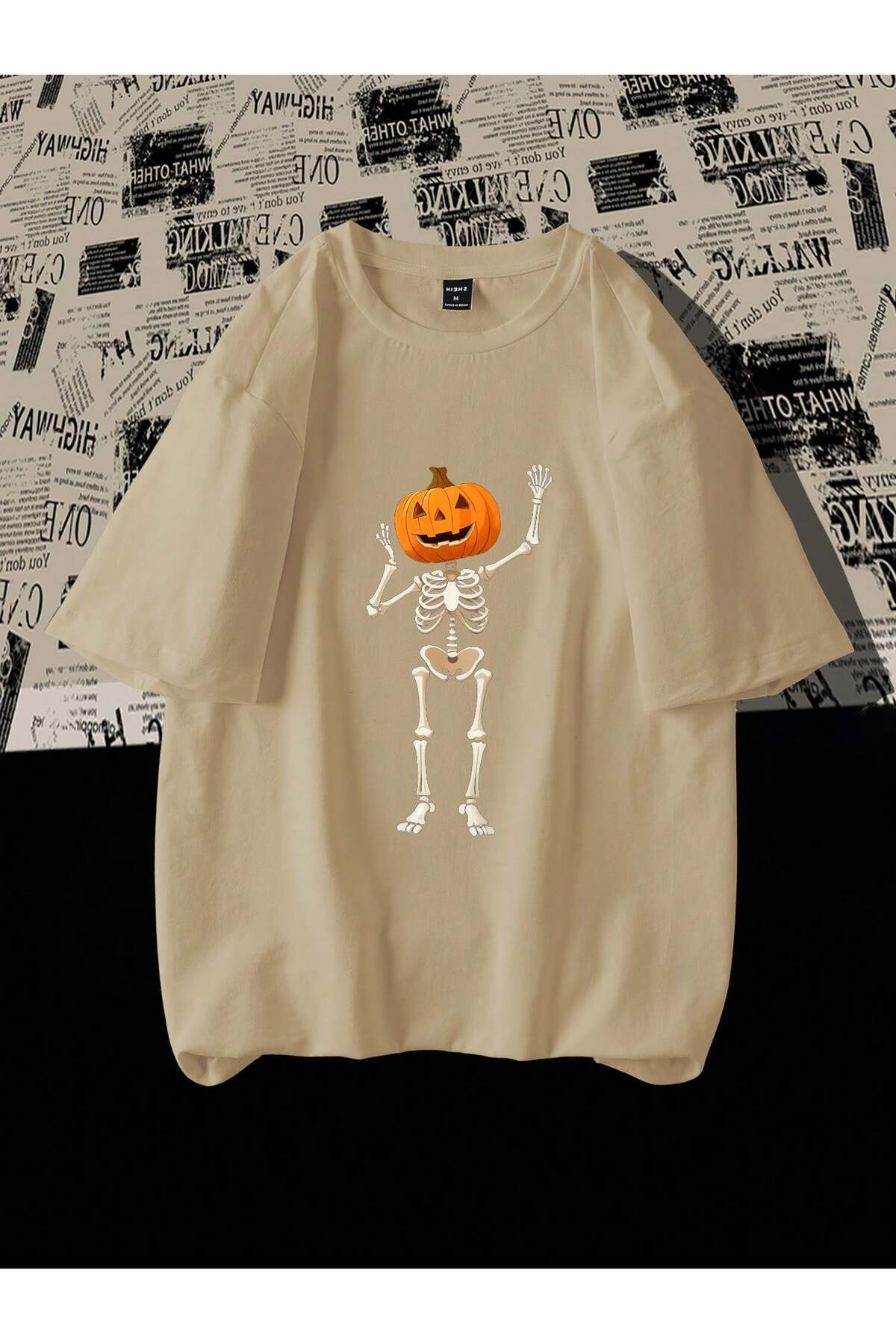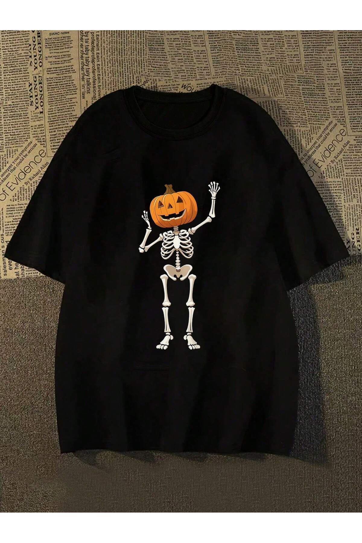 - Cadılar Bayramı ruhunu yansıtan baskılı tasarımıyla dikkat çeken bu t-shirt, sokak stiliyle öne çıkmanızı sağlar.