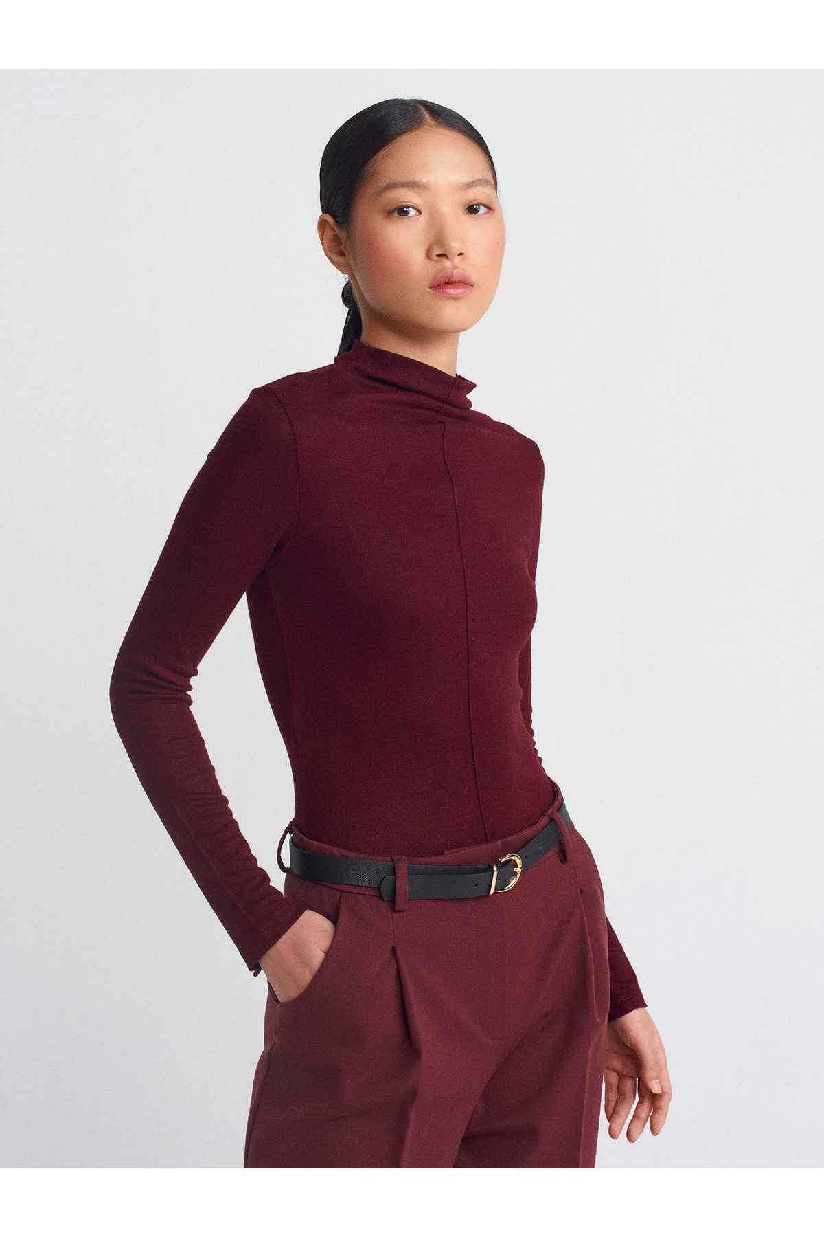 31391 Dik Yaka Uzun Kollu Top-Ekru