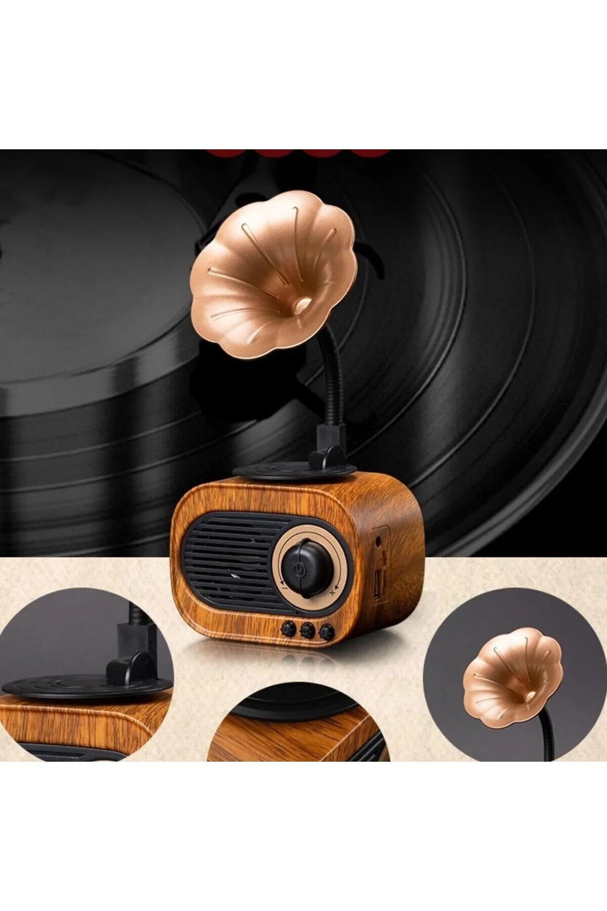 Ahşap Klasik Retro Gramofon Bluetooth Müzik Kutusu USB TF Kart Aux Destekli Nostaljik Radyo