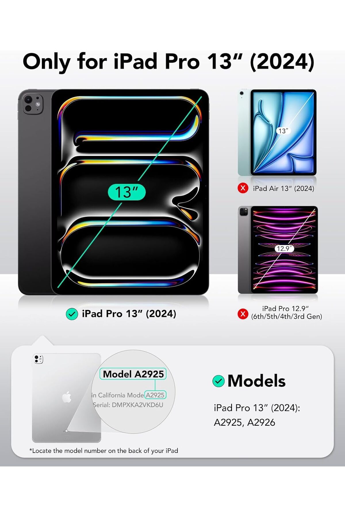 Ipad Pro 13 Inç M4 / M5 2024 /2025 Kılıf Kalem Bölmeli Stadlı Uyku Modlu Arkası Silikon Akıllı Case