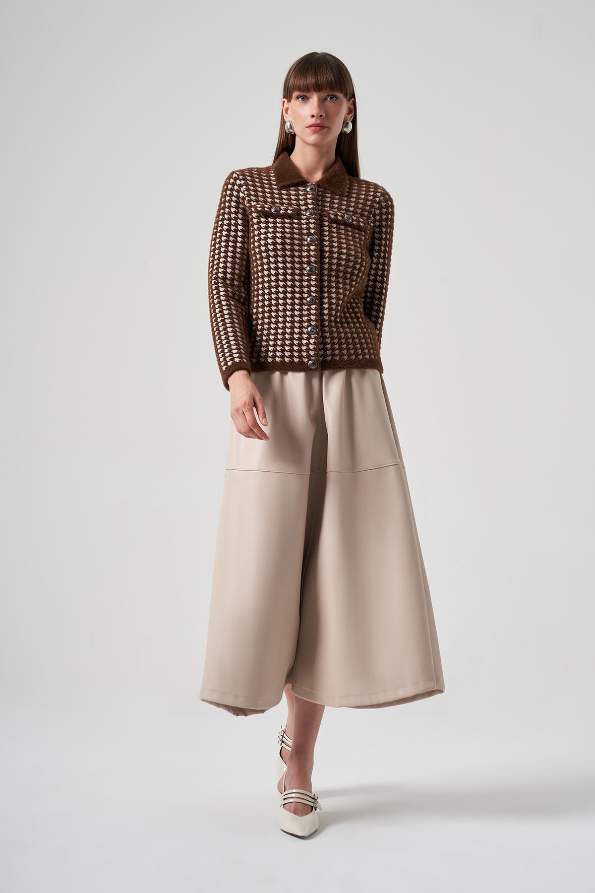 - Kahverengi tonlarındaki şık tasarımıyla her ortama uyum sağlayan Nuss Triko Düğme Detay Kısa Hırka, günlük kullanım için idealdir.