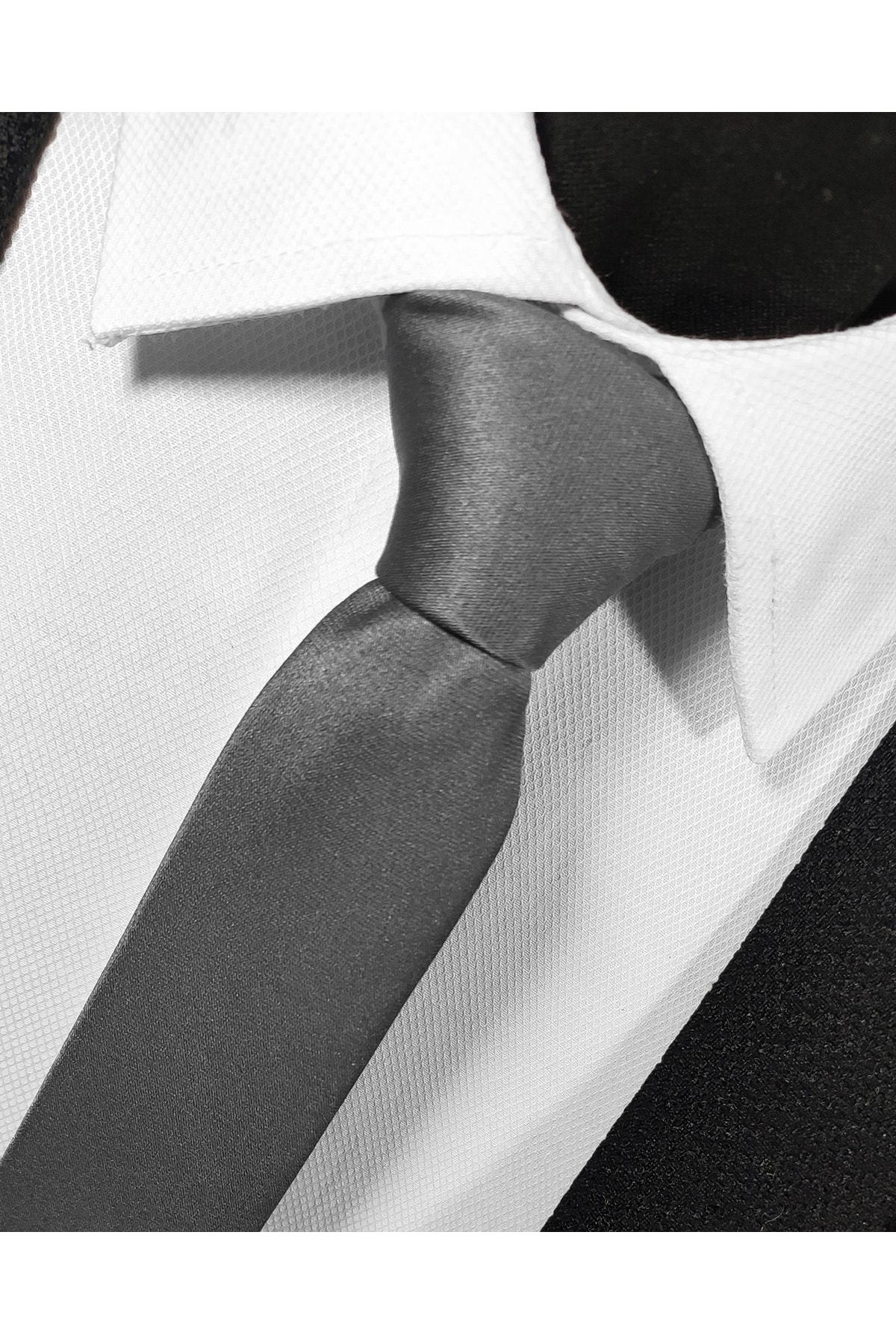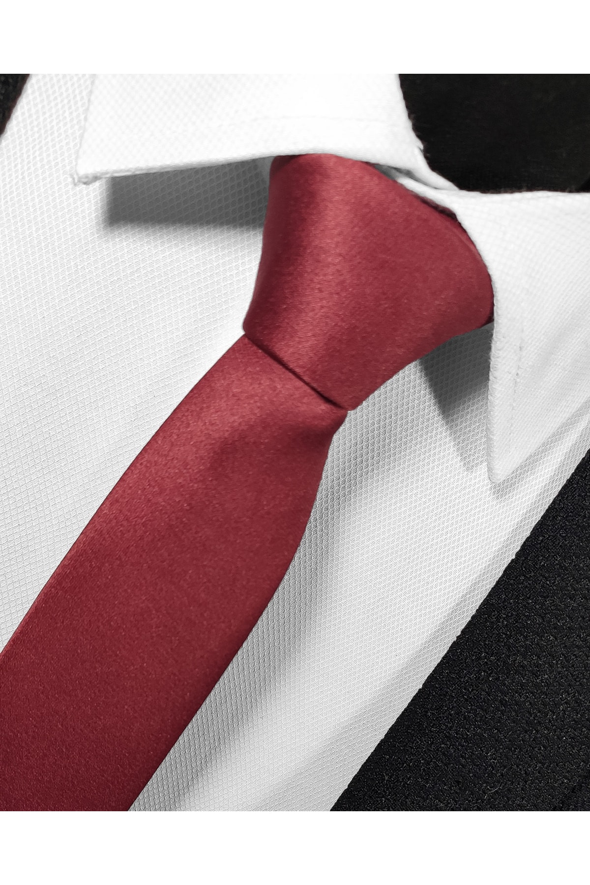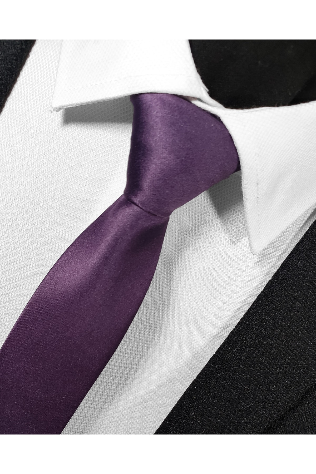 Ekstra Ince Açık Mürdüm Renk Düz Slim Fit 4 Cm Genişliğinde Kravat Mendil Seti Slim Fit Dar