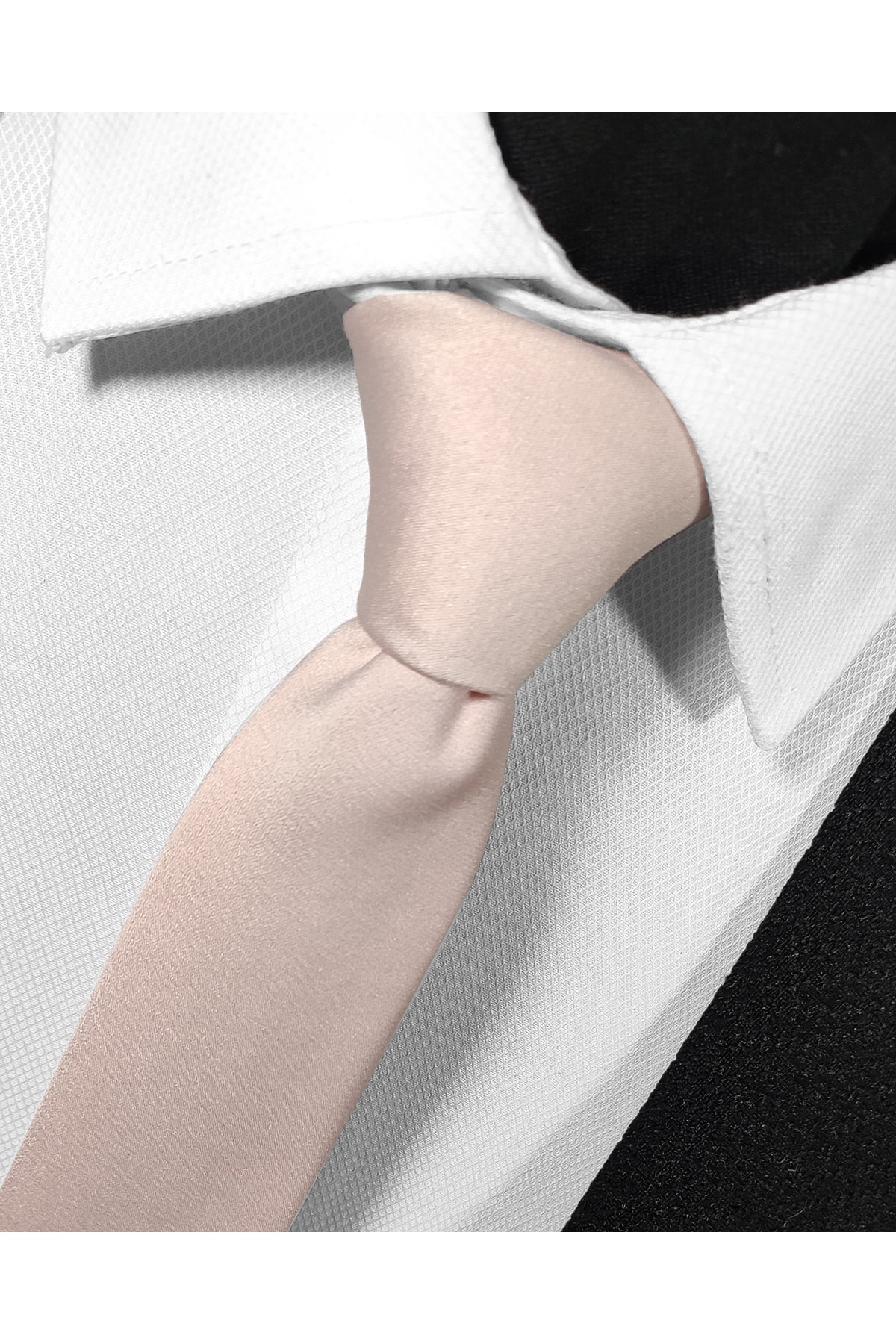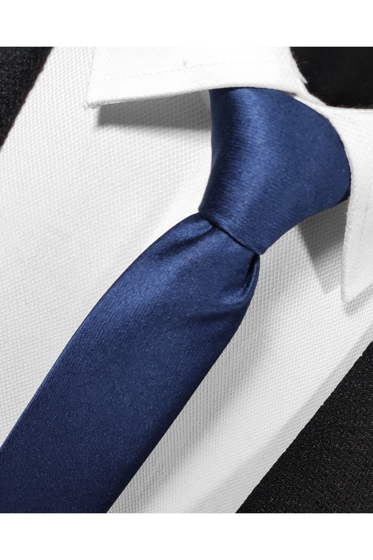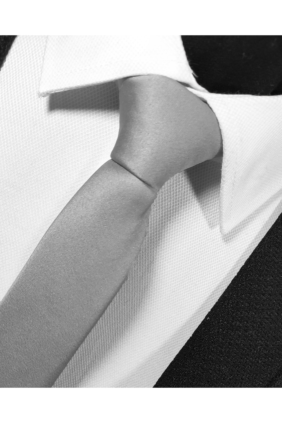 Ekstra Ince Açık Mürdüm Renk Düz Slim Fit 4 Cm Genişliğinde Kravat Mendil Seti Slim Fit Dar