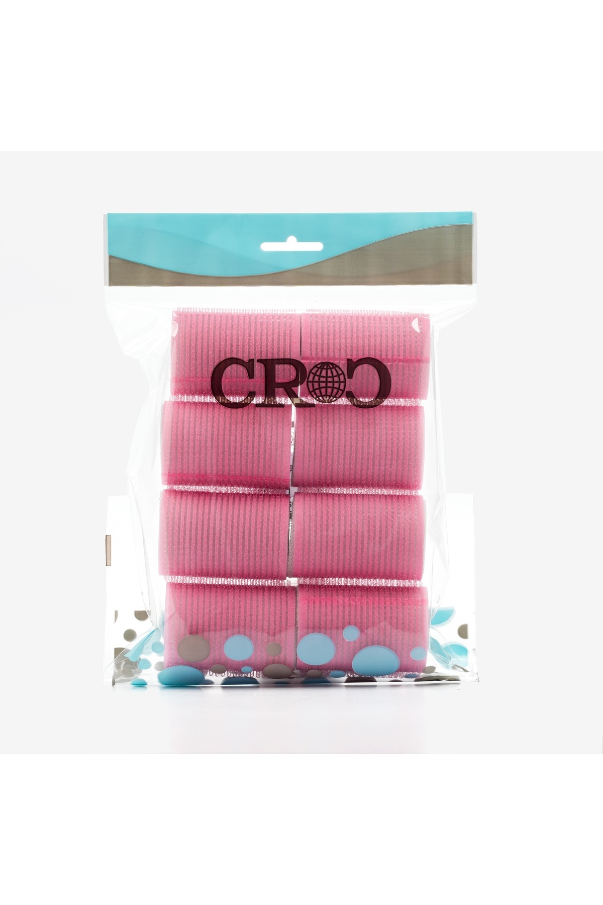 1207 Pembe Cırtlı Sünger Bigudi 8Li Çap 4Cm + (12Li Alüminyum Saç Pensi)