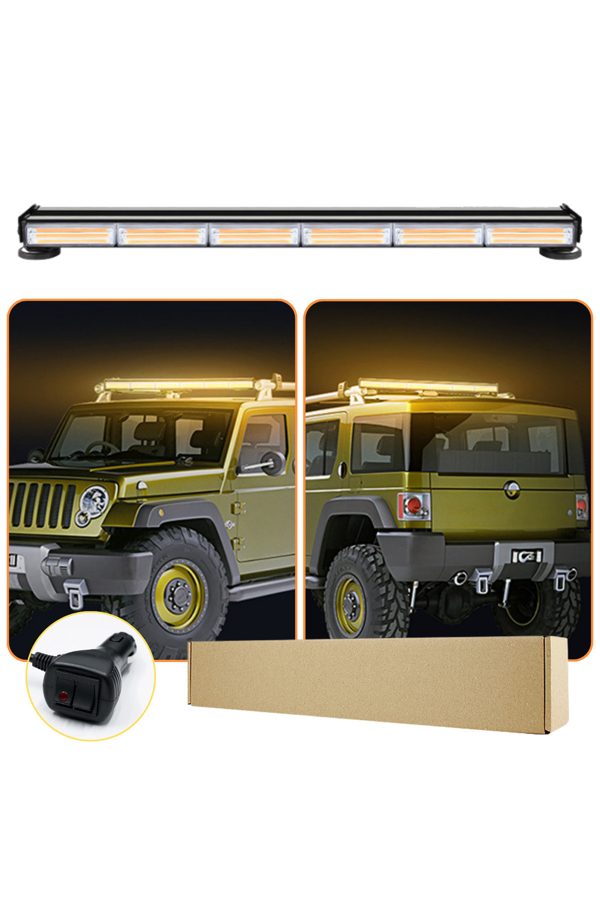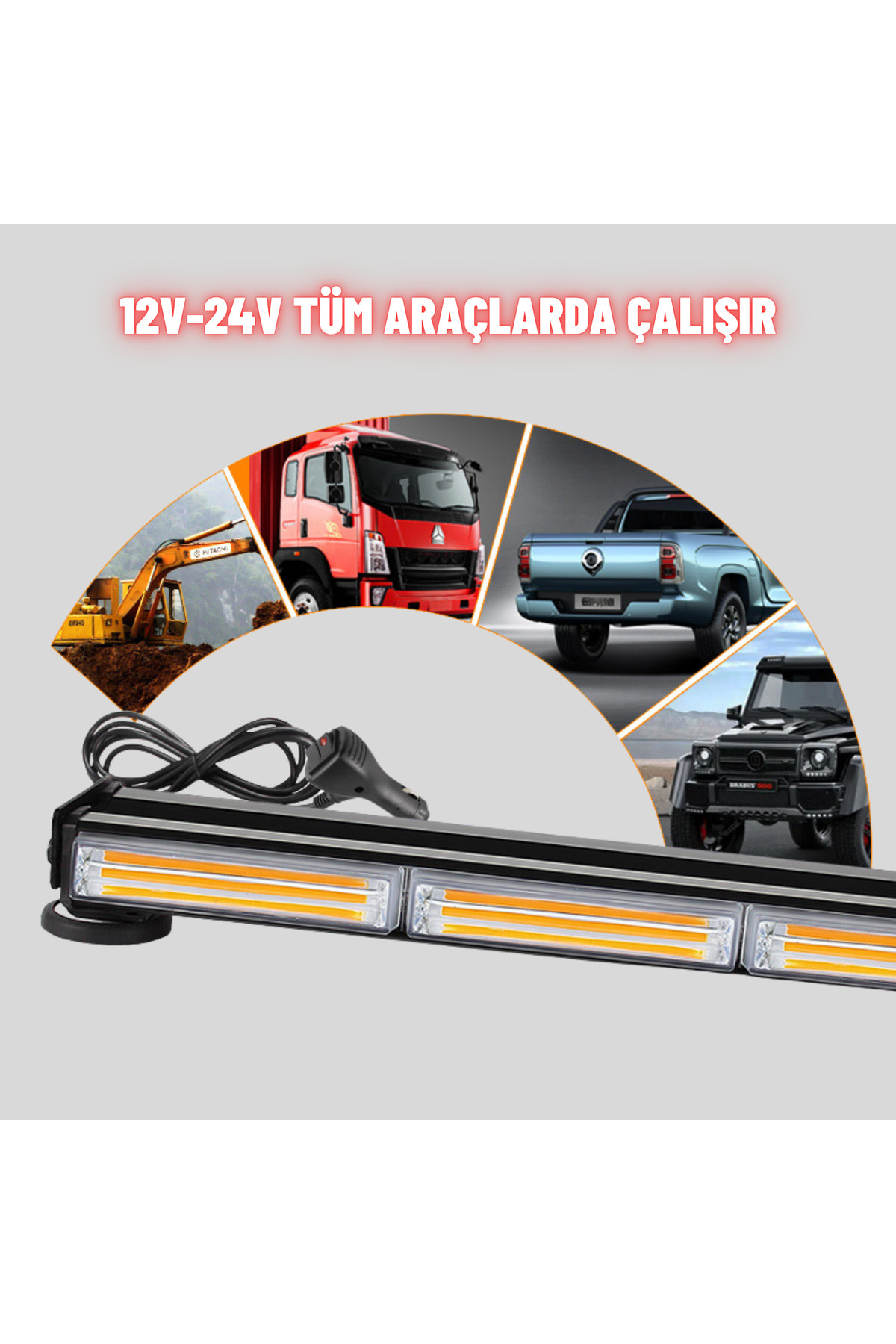 Çakarlı Tepe İkaz Lambası 90 Cm Mıknatıslı Turuncu Amber Çift Taraflı Led Bar 12 Mod 12-24 V