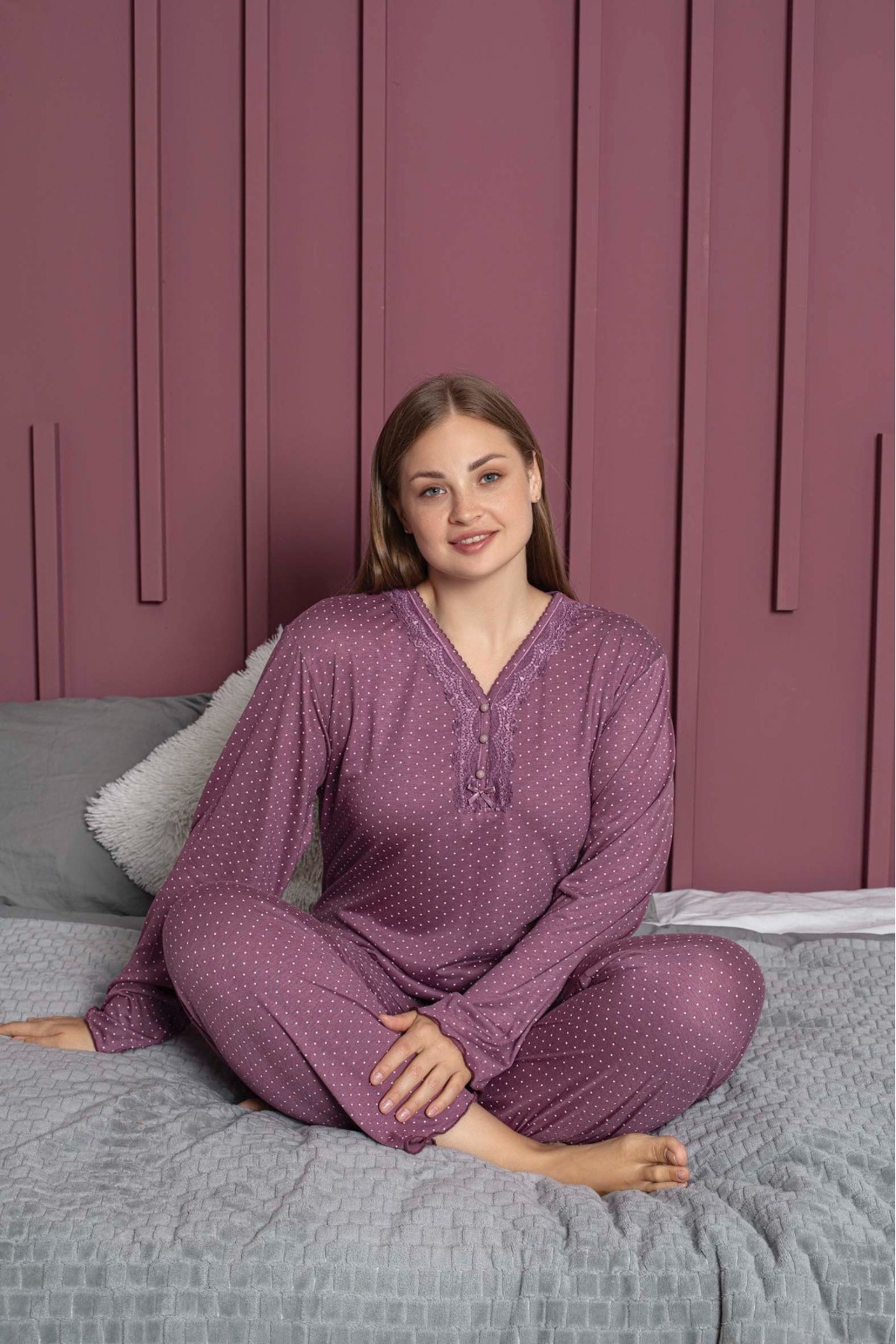 Kadın Büyük Beden Uzun Kollu Bambu Pijama Takımı