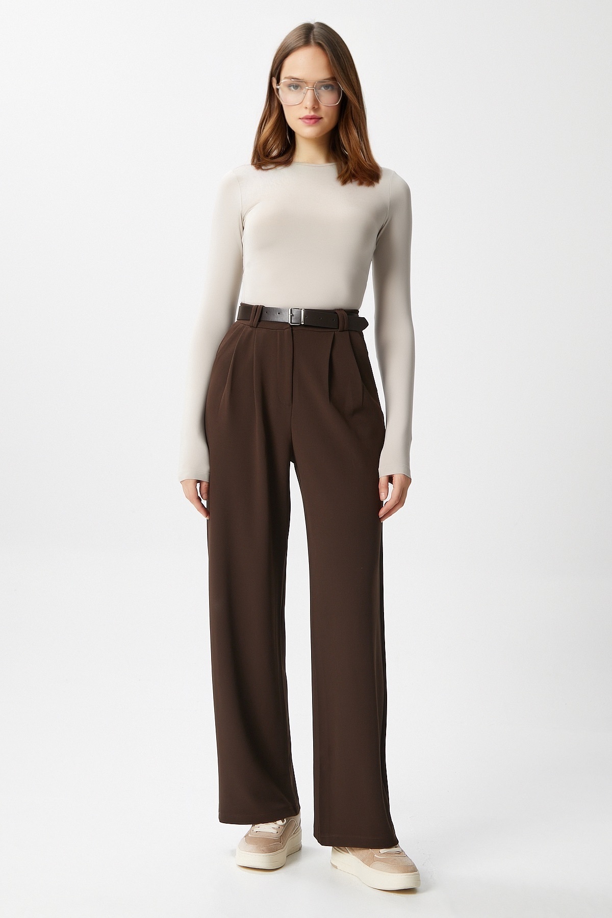 • Kadın Rena Kemerli Likralı Lacivert Palazzo Pantolon 60 Polyester %30 Elastan %10 Likra .