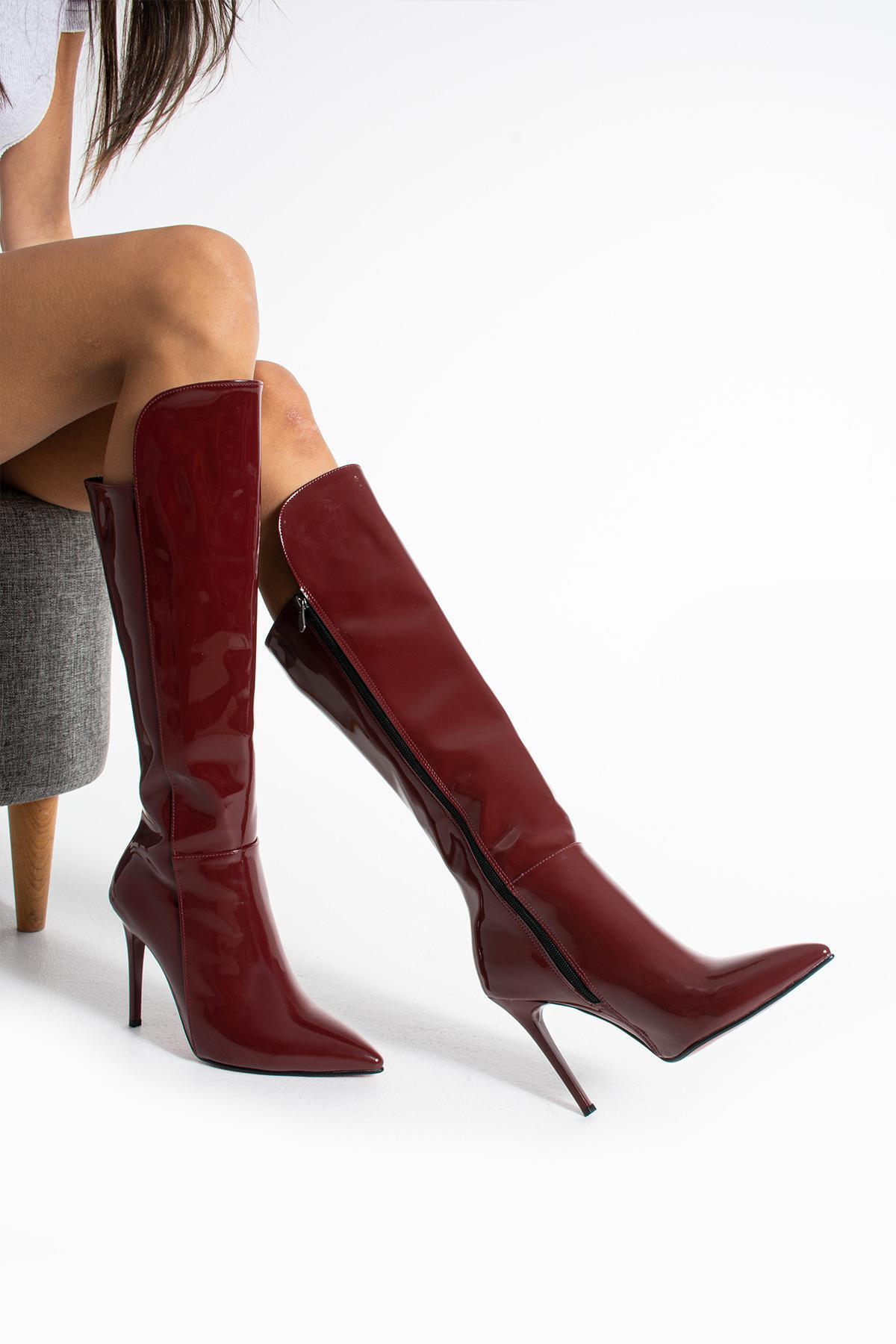 Yüksek kaliteli rugan materyali, çizmenin dayanıklılığını artırırken şık görünümünü korur ve uzun süreli kullanım için uygundur