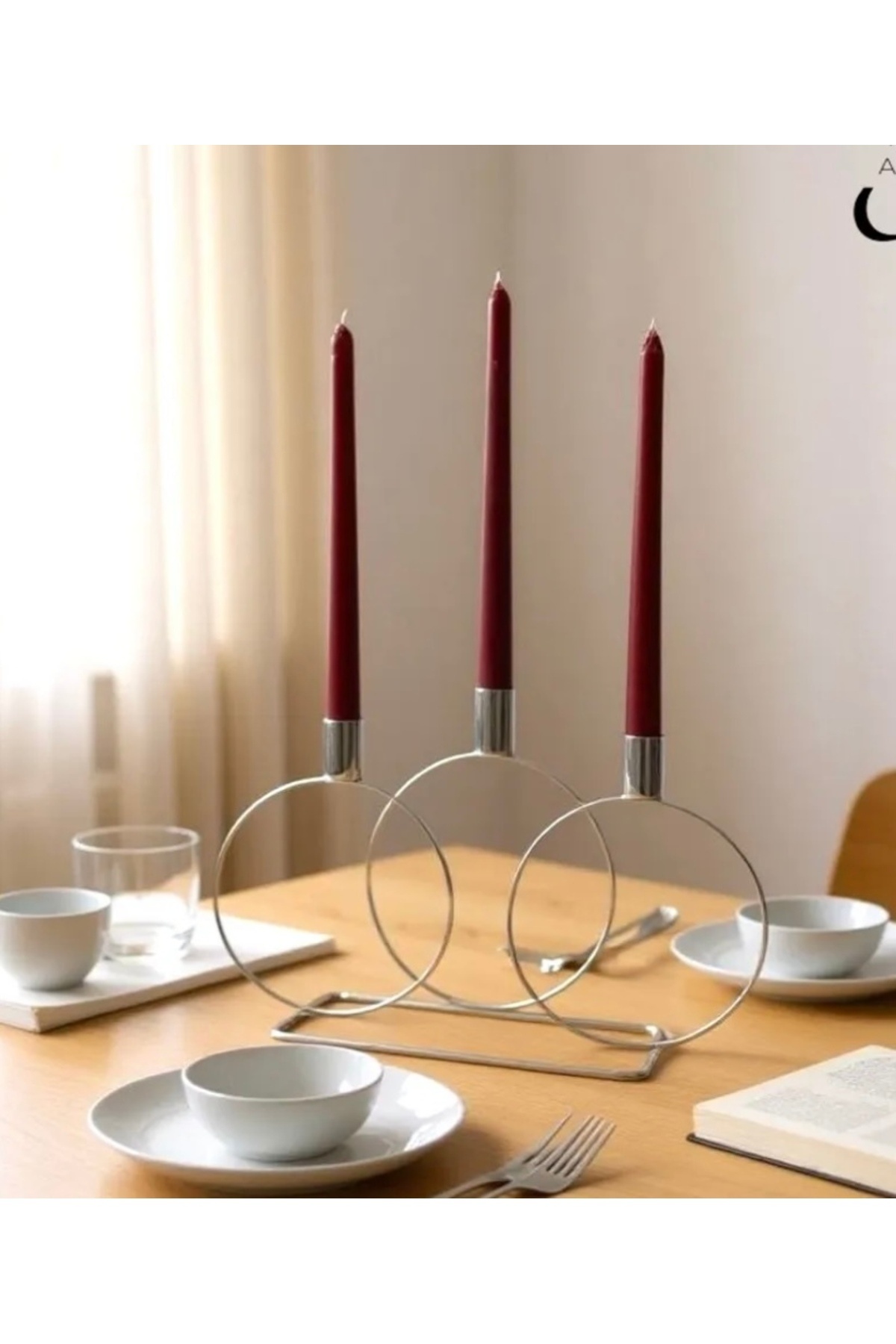Gümüş Şamdan Mumluk Metal 3 Gözlü Yuvarlak Halka Mumluk Ev Dekorasyon, Şamdan Mumluk