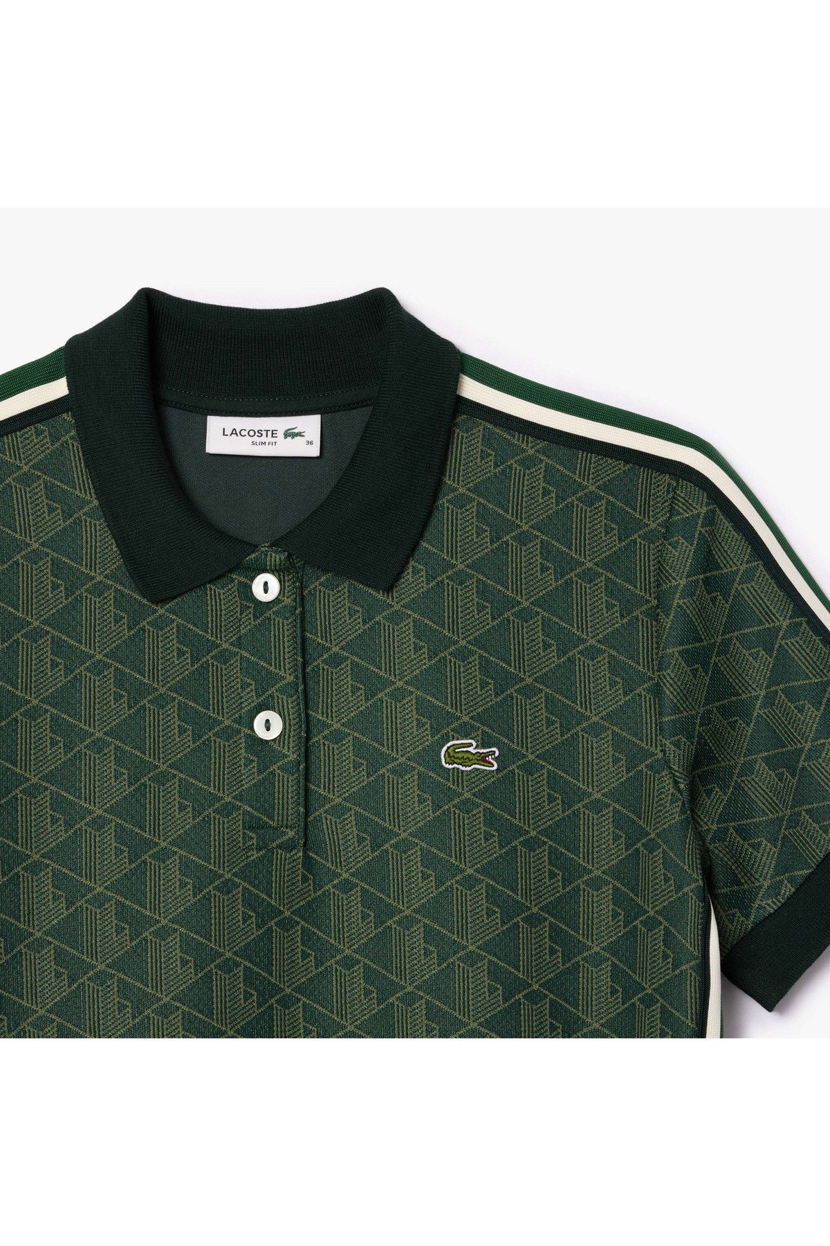 Kadın Slim Fit Kısa Kollu Polo Yaka Monogram Koyu Yeşil Elbise