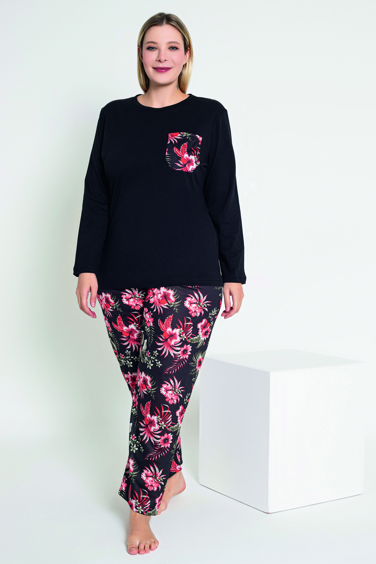 - Rahat kesimi ve şık çiçek desenleriyle evde konforunuzu artıran uzun kollu pijama takımı.