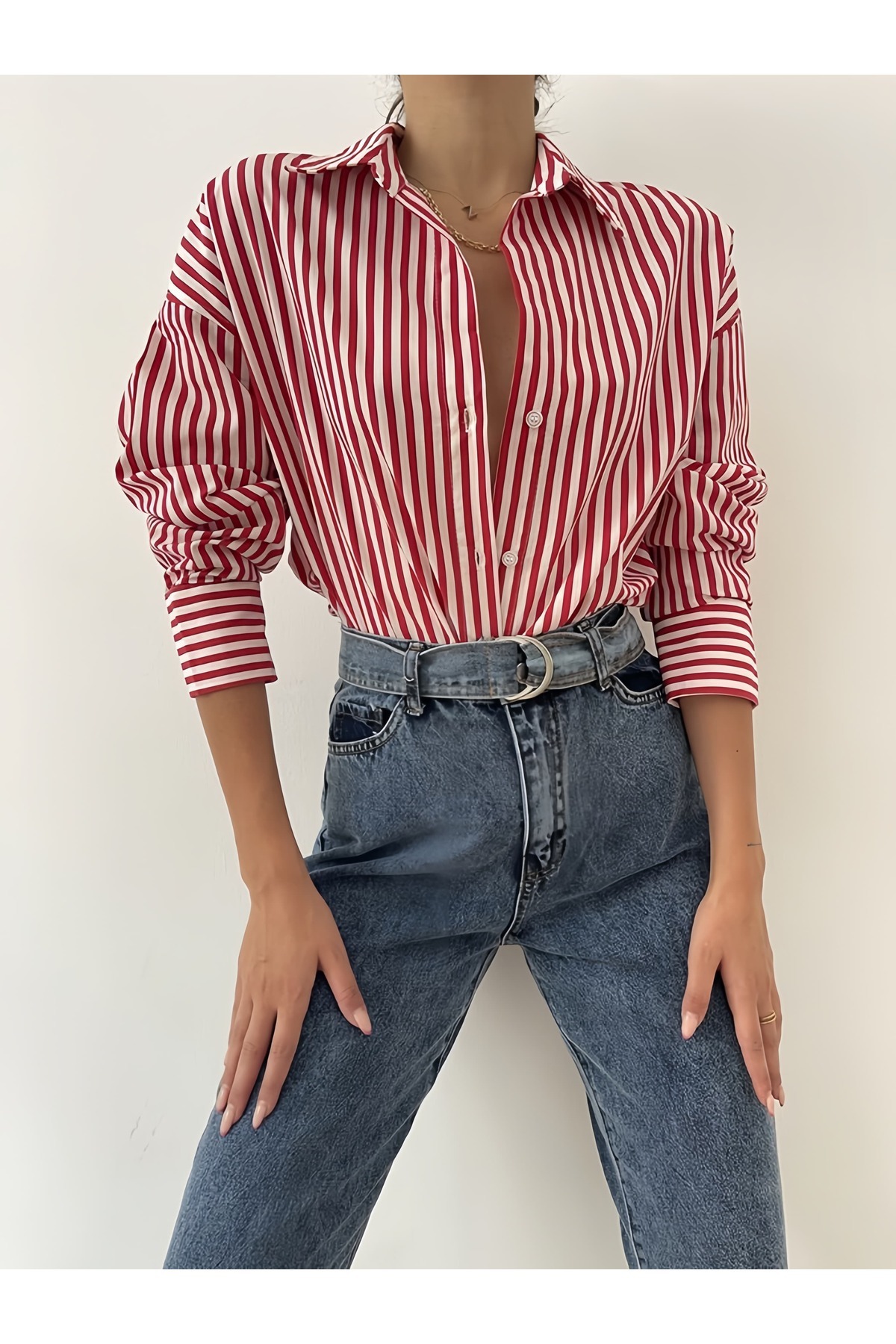 - Gömlek yaka detayı ile klasik ve modern çizgileri harmanlar.