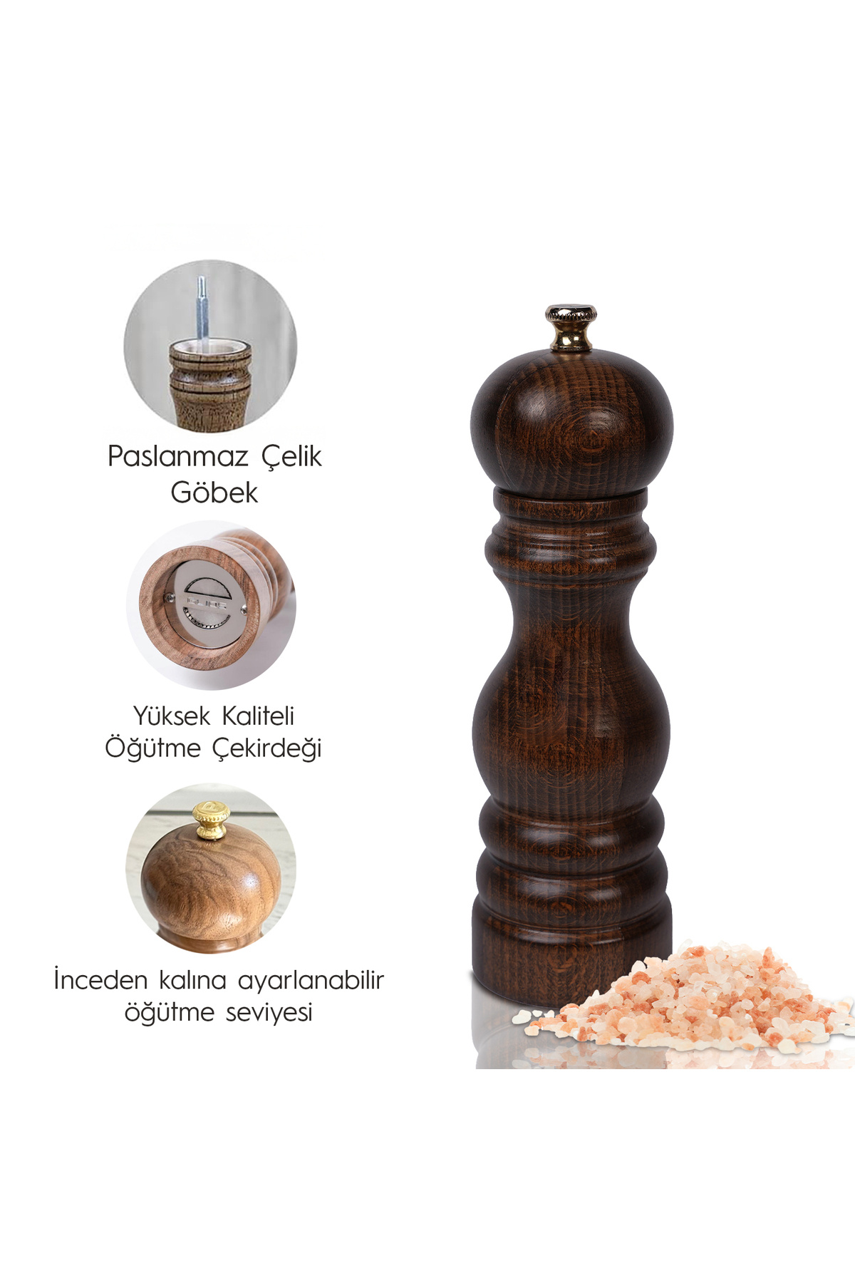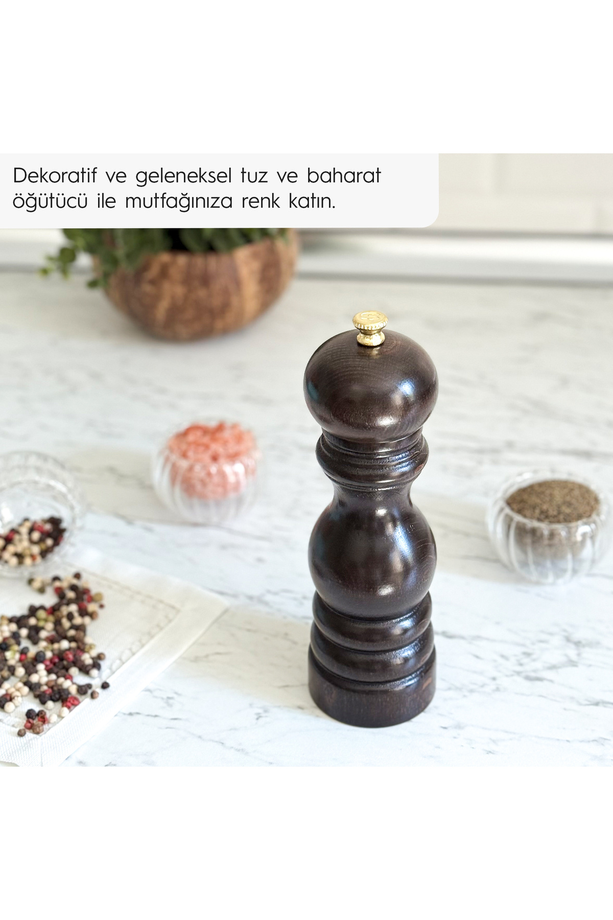 Kahverengi Ahşap Tuz Ve Karabiber El Değirmeni Öğütücü Grinder 18 Cm