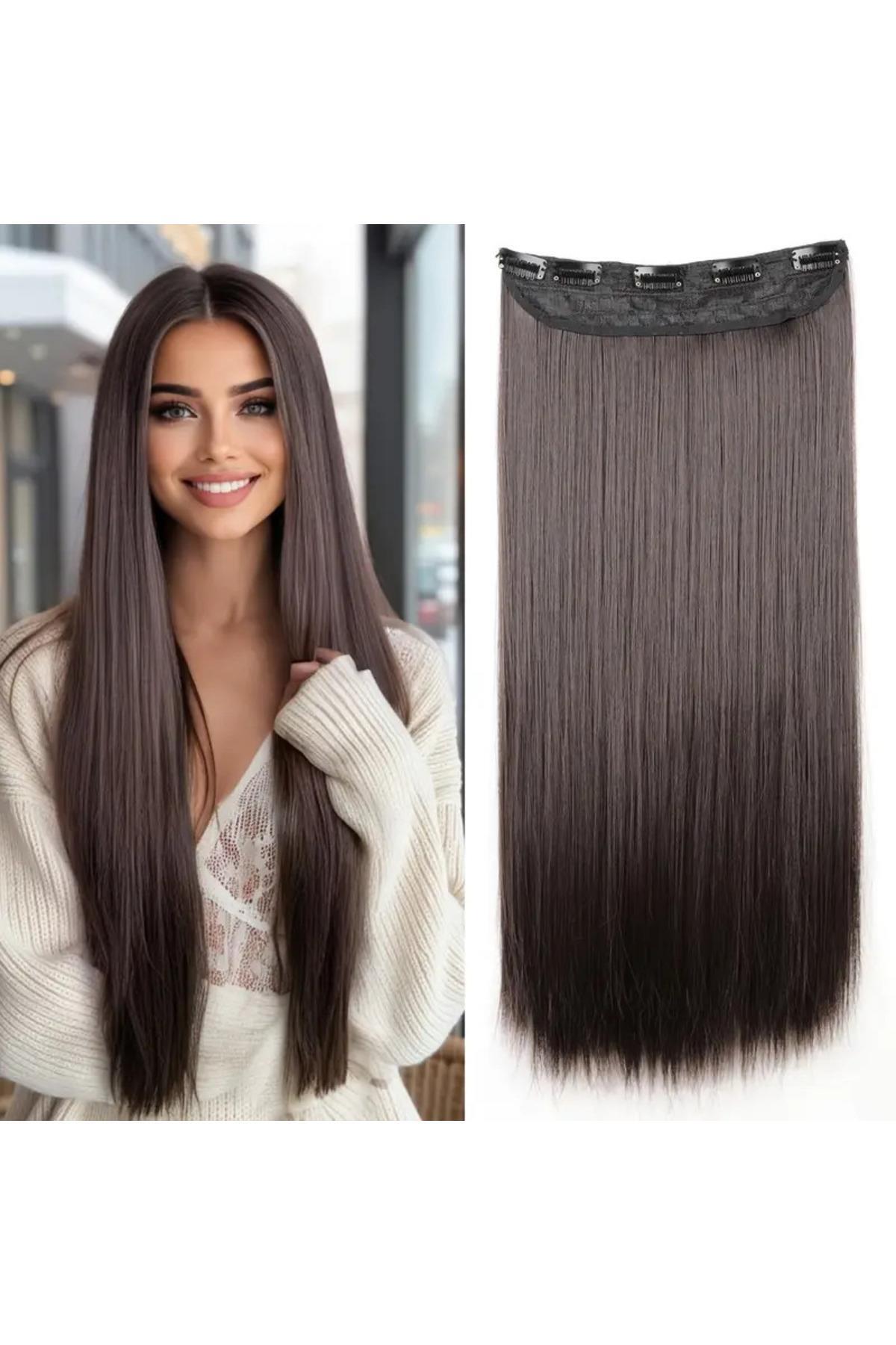 Kahverengi Düz Saç 60 Cm 110gr Isıya Dayanıklı Yarımay