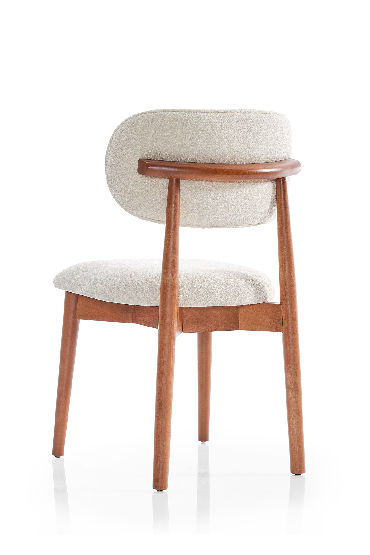 Polo Bukle Kumaş 2’li Ahşap Lüks Sandalye Krem