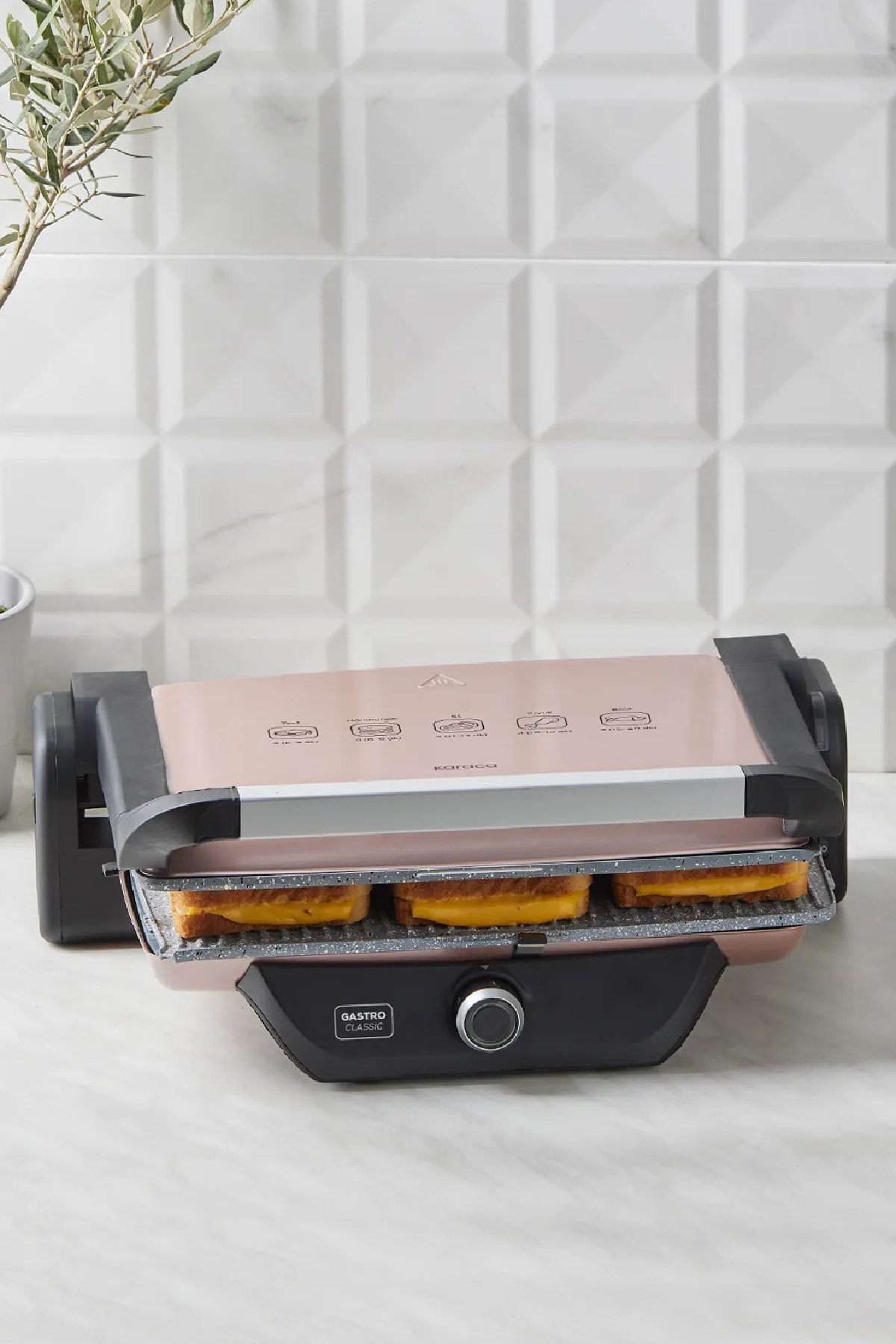 - 180° açılabilen gövde ile pratik şekilde tost makinesinden ızgaraya geçiş