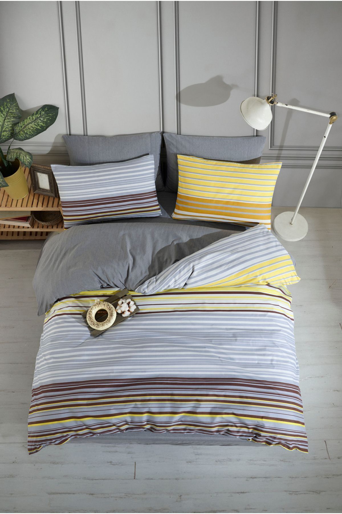 Desenli tasarımıyla odanıza modern bir hava katan bu çarşaf takımı, uyumlu renkleriyle dekorunuza kolayca entegre olur.