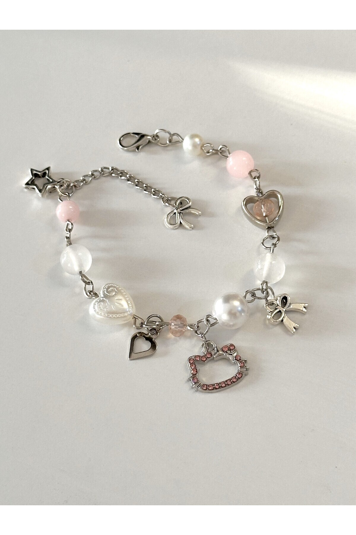 Gençlerin enerjisini ve stilini yansıtan pembe taşlı Hello Kitty boncuk bileklik, her anınıza neşe katıyor