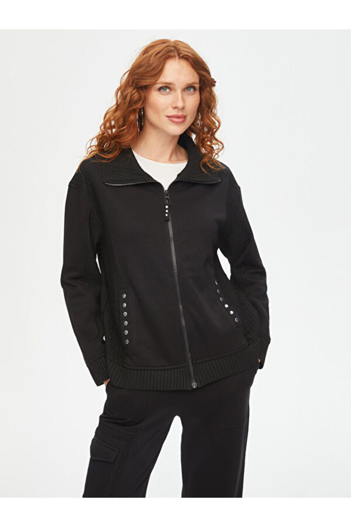 Kendinden Jakarlı Garnili Trok Taş Detaylı Eşofman Üst 69266