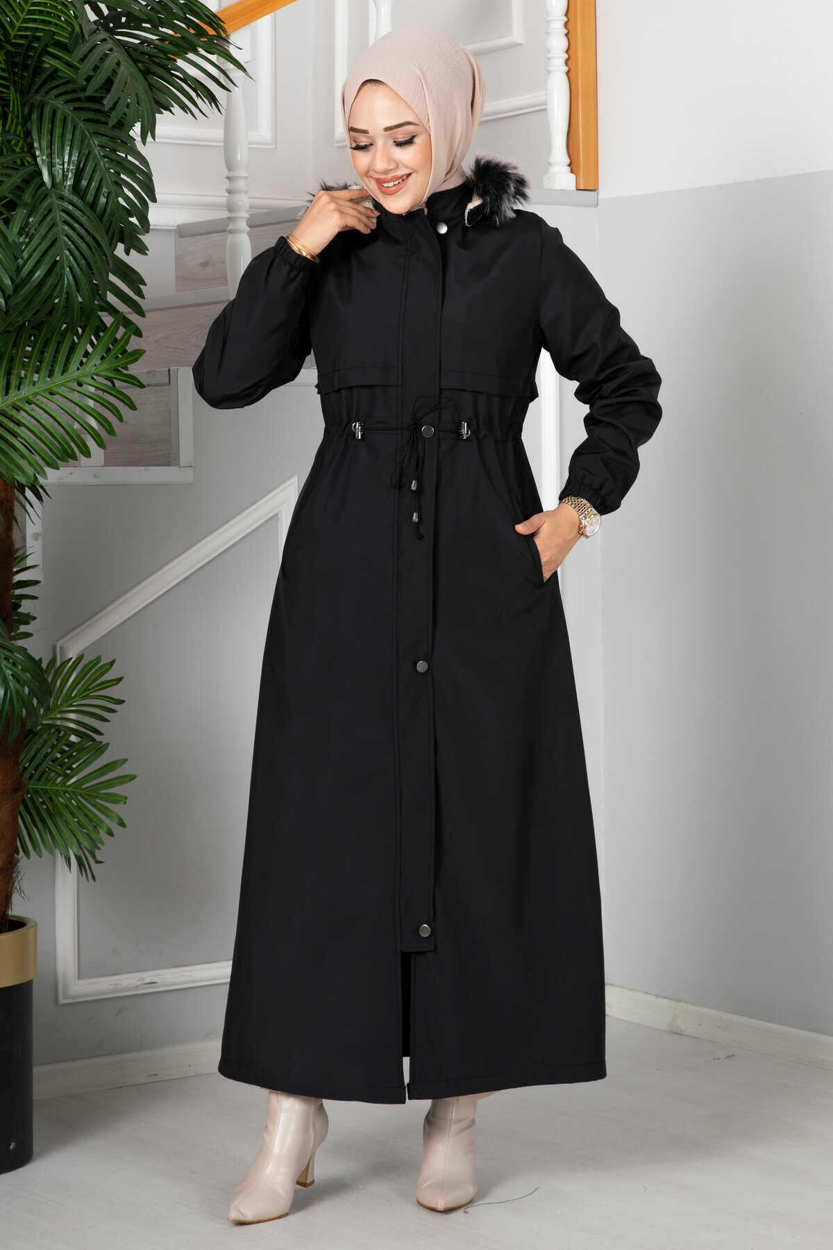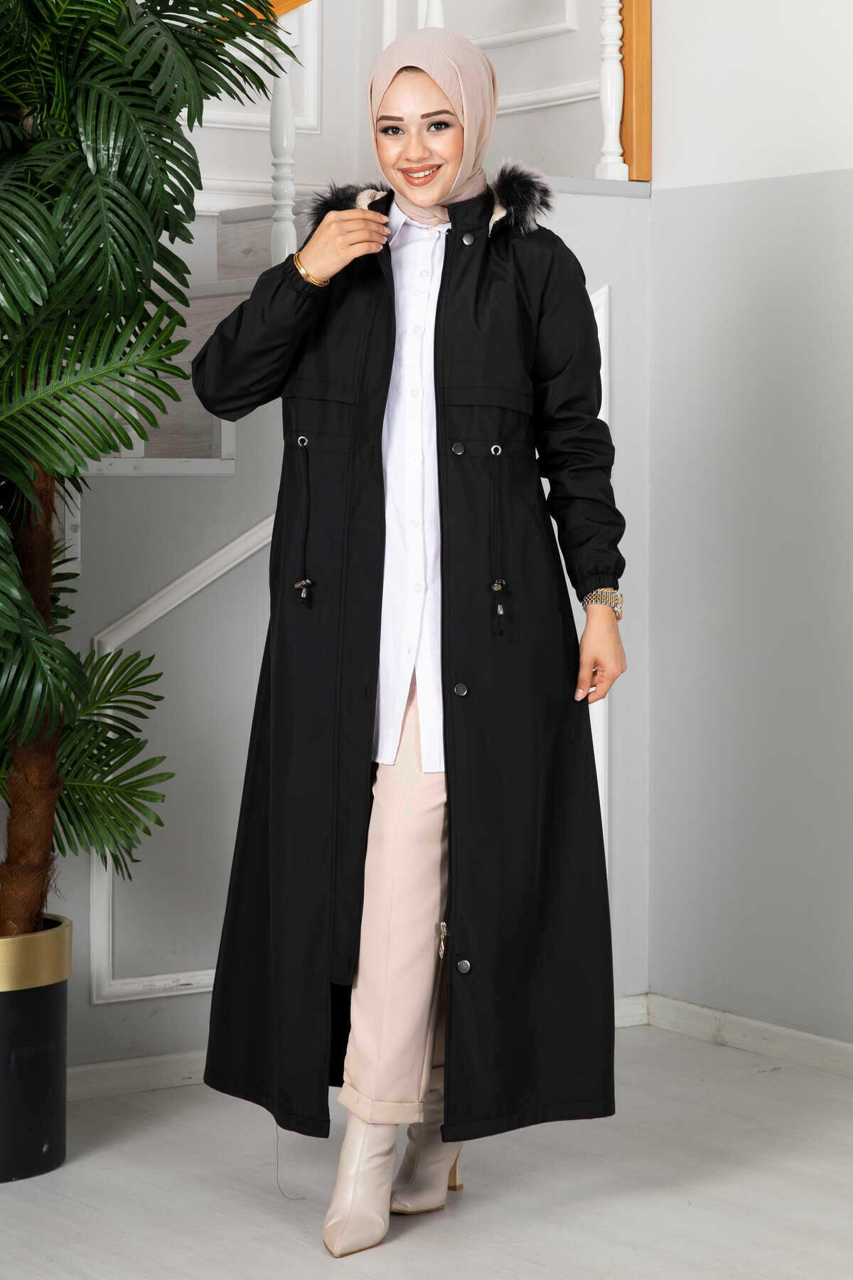 Eflin Kapüşonlu Tesettür Mont Siyah