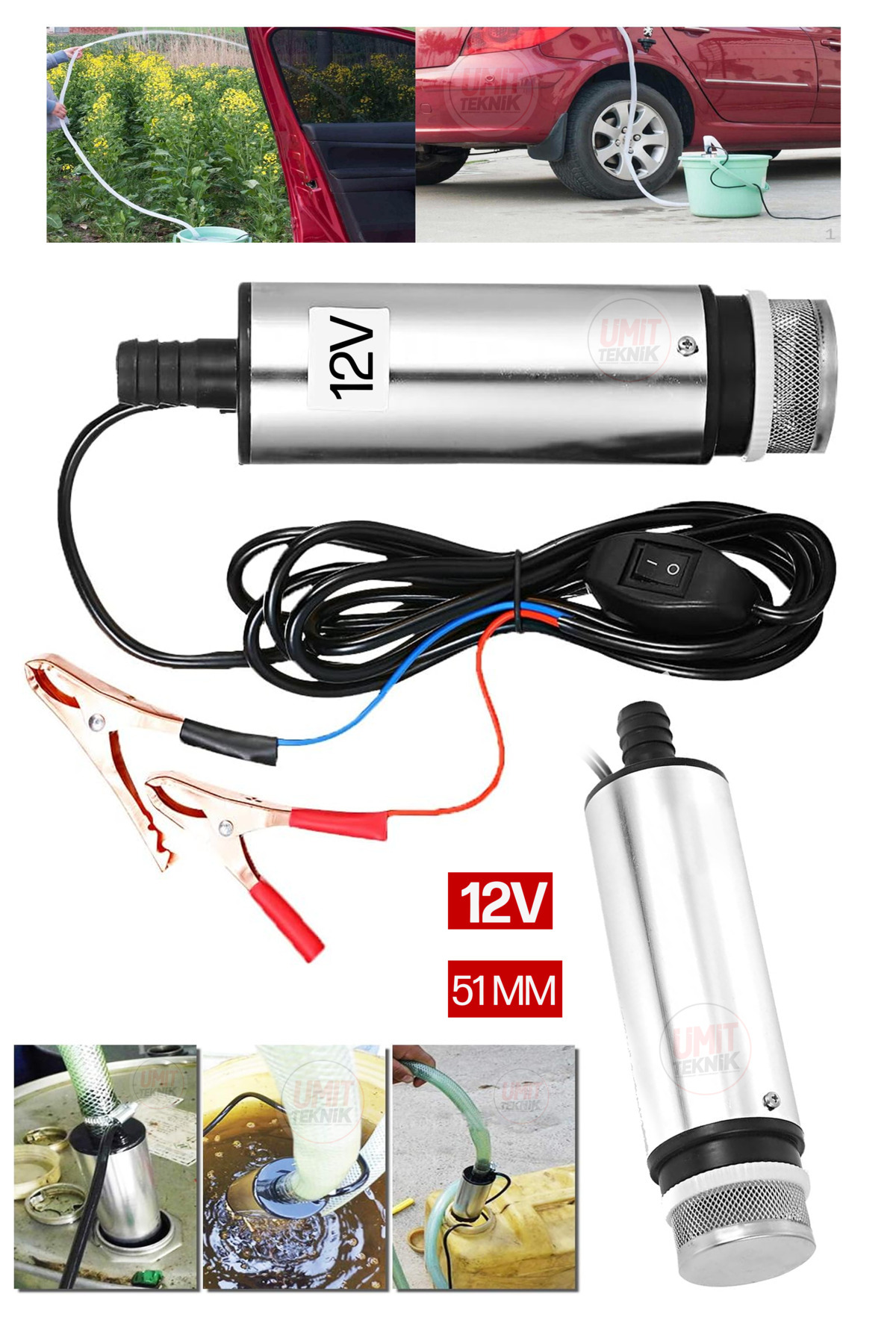 12Volt Kendinden Emişli Dalgıç Yağ Mazot Benzin Su Süt Transfer İkmali Pompası