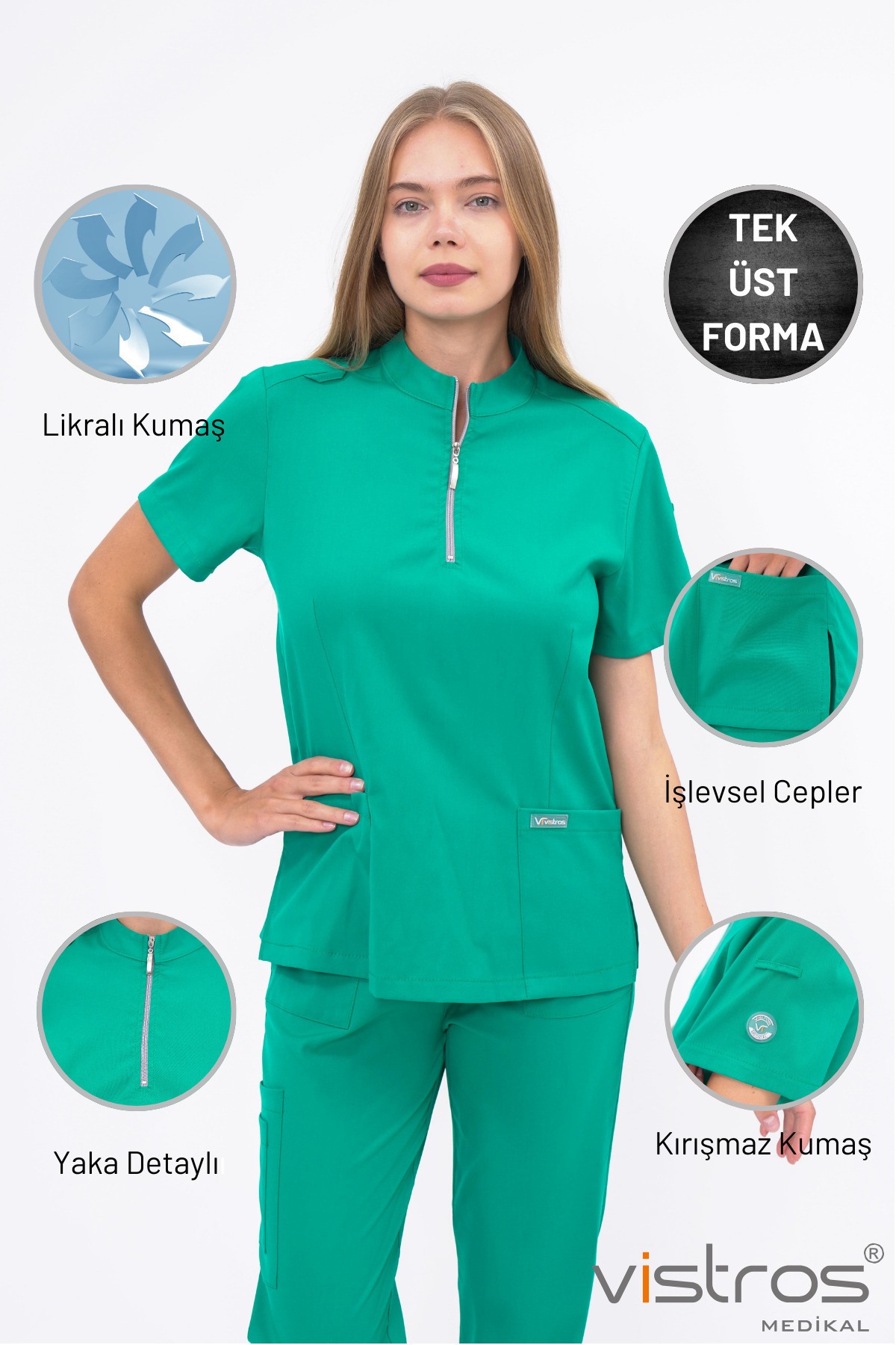 Likralı Yüksek Kaliteli Likralı Beyaz Scrubs Hemşire Doktor Üniforma (Üst) V-010U