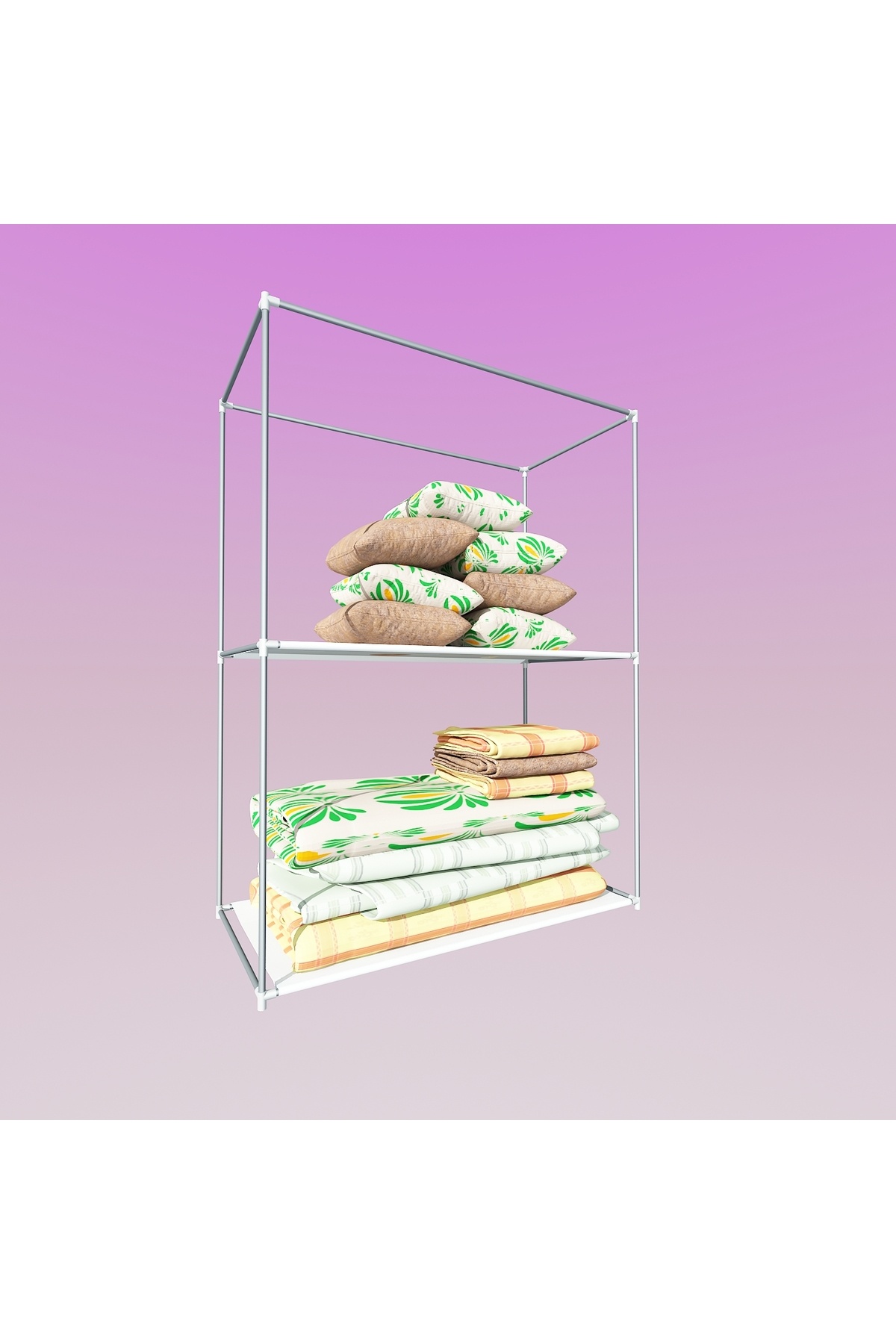 Dzgn Home Çelik Metal Borulu Yorgan Hurcu Bez Dolap Bez Yüklük Portatif Saklama Dolabı Gardırop
